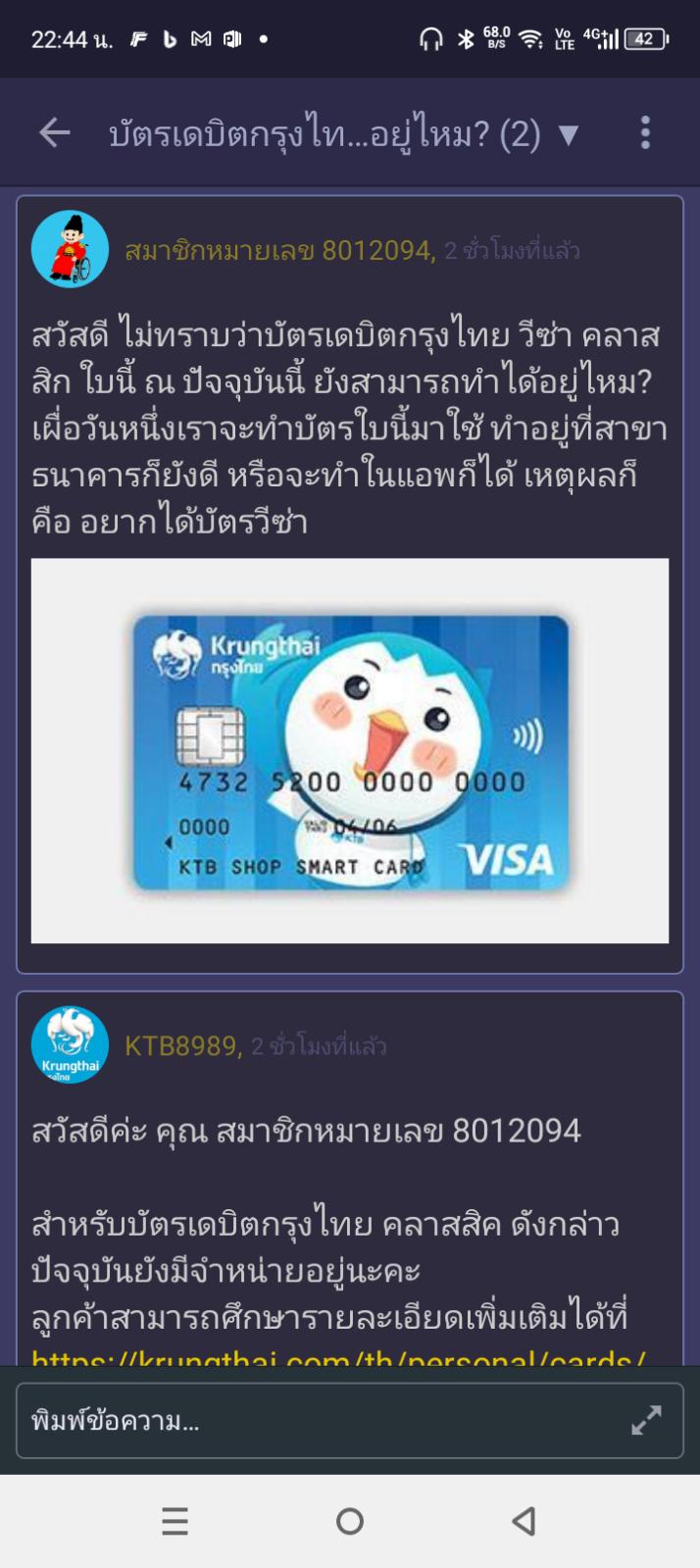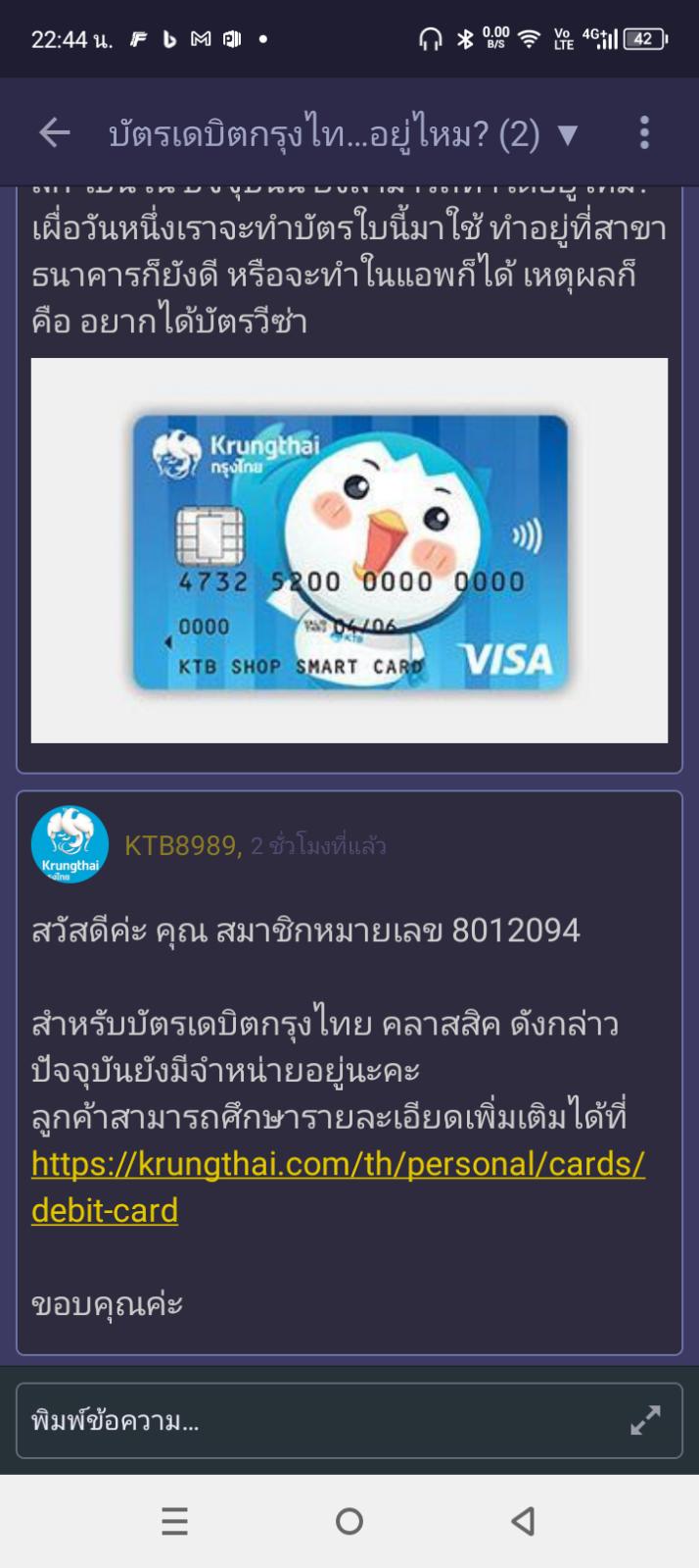 โอเค เราไปถามหลังไมค์กับทาง KTB8989 มาแล้ว สรุปว่าบัตรเดบิตกรุงไทย วีซ่า คลาสสิก ยังมีจำหน่ายอยู่จ้า สามารถทำได้ตามปกติเลยจ้า ^_^