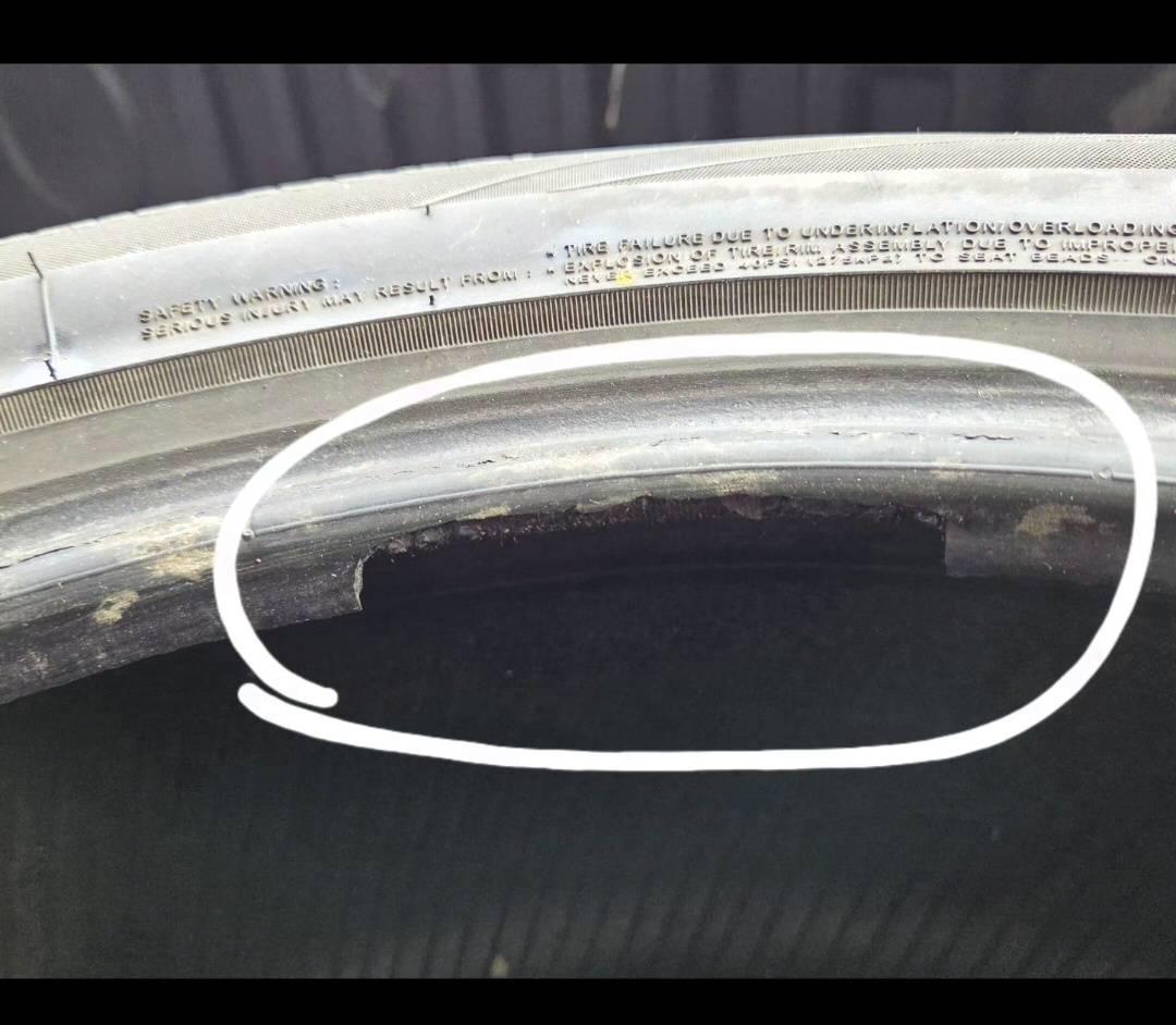 มอเตอร์ไซต์ ยางหลังรั่ว พอเอาไป แทงไหมขี่ได้ ซัก 100 กม. ซึม บาดแผลปริ มีรอยฉีกจากเดิมไม่มี