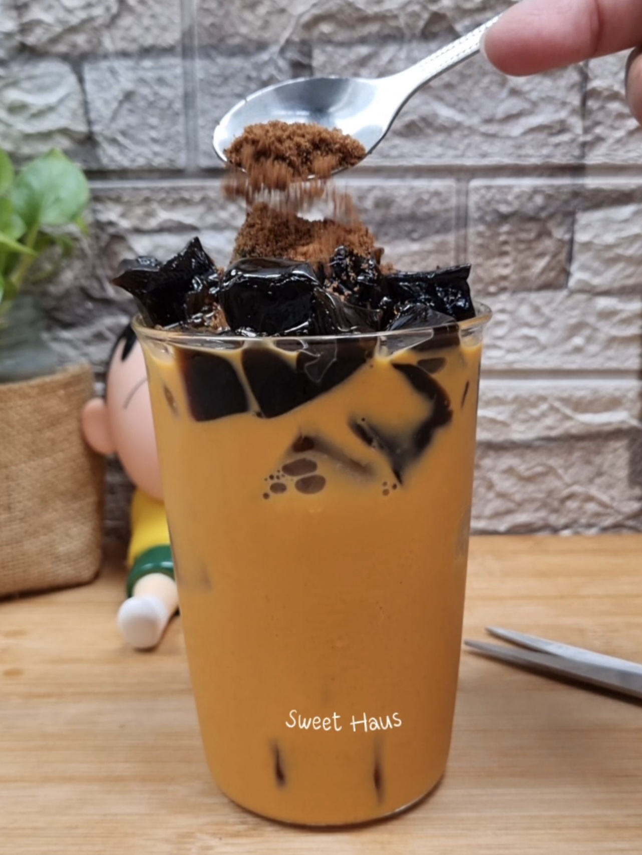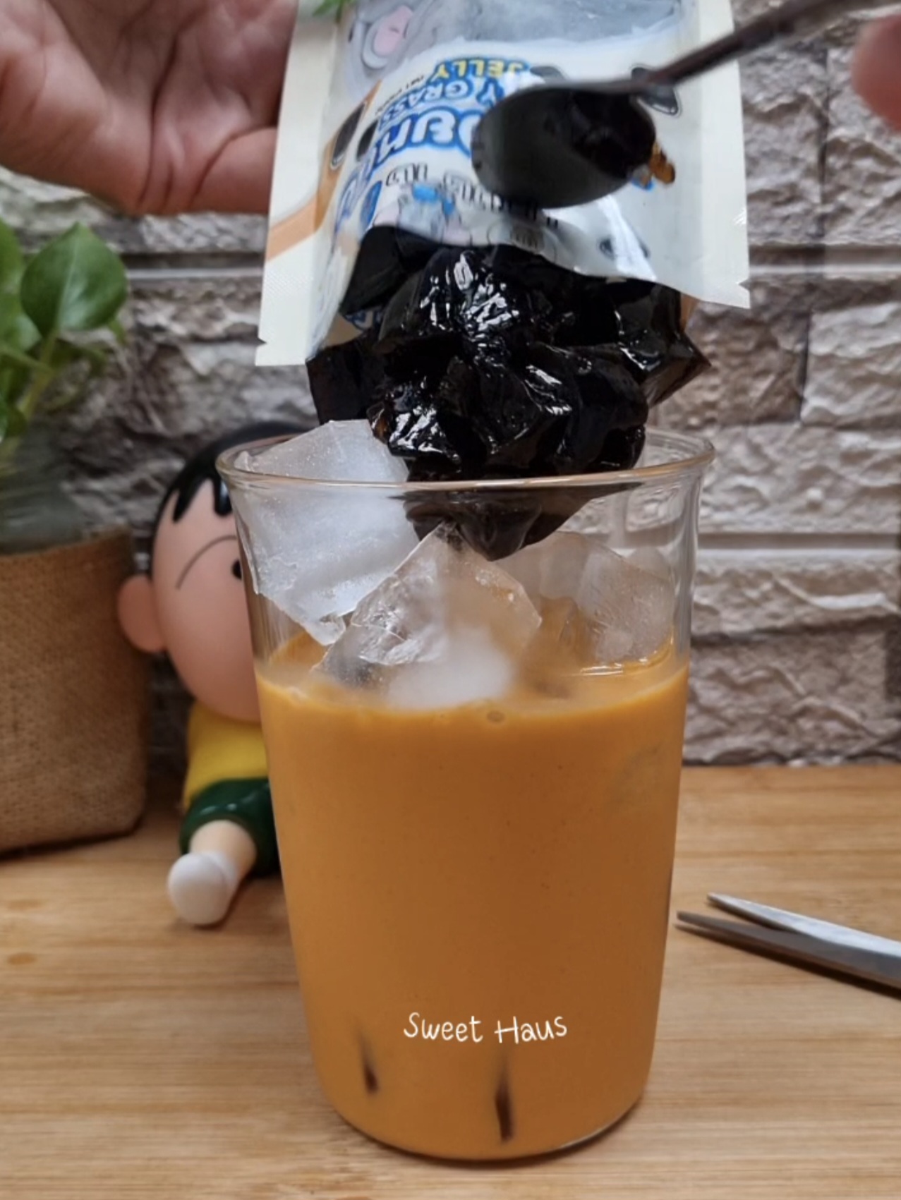 "Black Jelly in Milk Tea" หรือที่คนไทยเรียกกันติดปากว่า "เฉาก๊วยชานม" จากเซเว่น ราคาย่อมเยาว์แค่ 18 บาท ถูกกว่านั่งวินไปปากซอยอีก รู้สึกตัวเองเหมือน influencer แต่แบบงบจำกัด