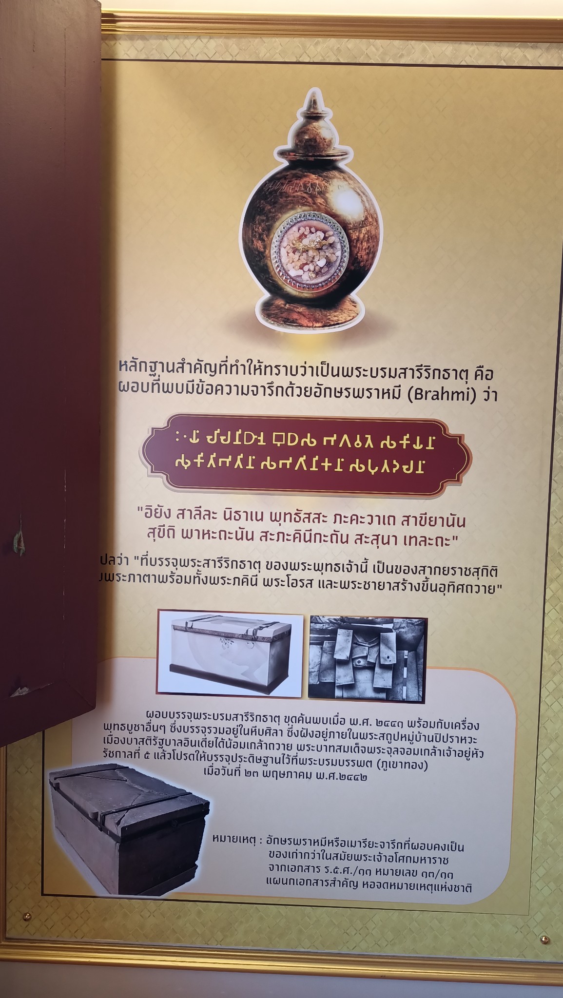 พระบรมสารีริกธาตุ ของจริง ที่ขุดพบครั้งแรก อยู่ที่นี่ได้รับมาสมัยรัชกาลที่ 5
