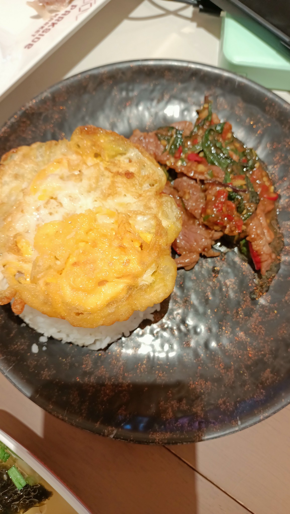 ทานข้าวกันที่ศูนย์อาหาร กะเพราเนื้อวากิว ไข่ดาวสุกๆ แบบที่แฟนผมชอบ 157 บาท