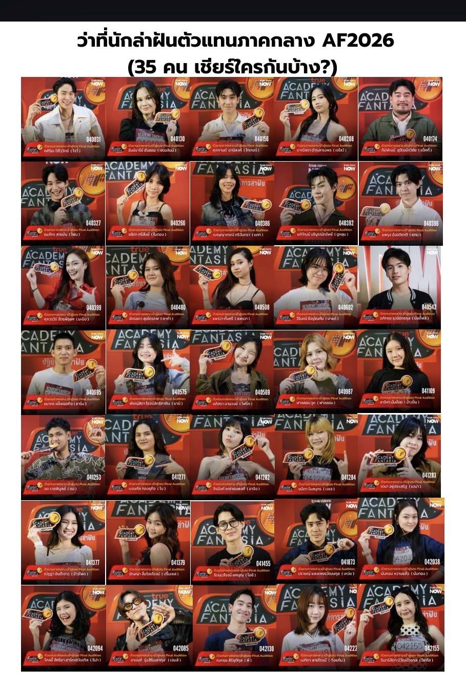 นี่คือว่าที่นักล่าฝันตัวแทนภาคกลาง AF2026 ทั้ง 35 คน