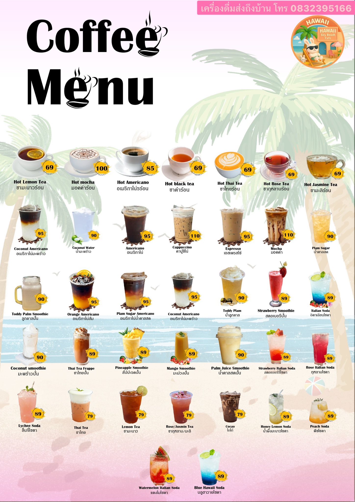 Hawaii Sky Beach Cafe เป็นคาเฟ่เปิดใหม่ ติดหาด ในร้านจะแบ่งเป็น Indoor และ Outdoor