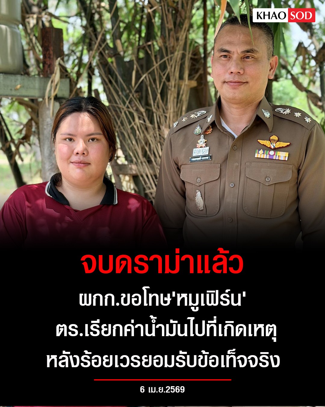 จบดราม่า ผกก.ขอโทษ หมูเฟิร์น อินฟลูฯสาว ปม ตร.เรียกเงินค่าน้ำมันไปที่เกิดเหตุ หลังร้อยเวรยอมรับข้อเท็จจริงกับทางผู้กำกับแล้ว