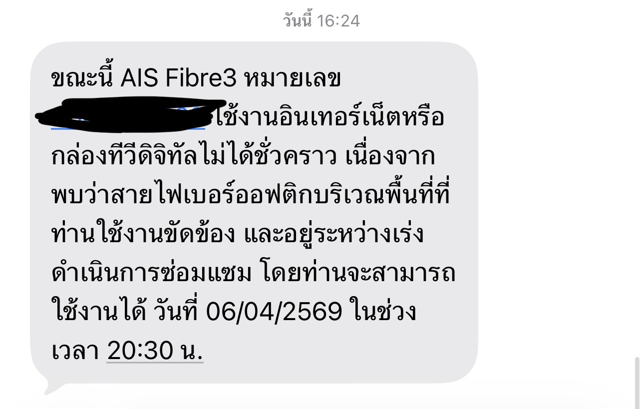 รีวิวประสบการณ์จริง AIS Fiber สัญญาณล่มช่วงวันหยุด เตรียมใจเรื่องช่างไม่เพียงพอและการแก้ปัญหานาน