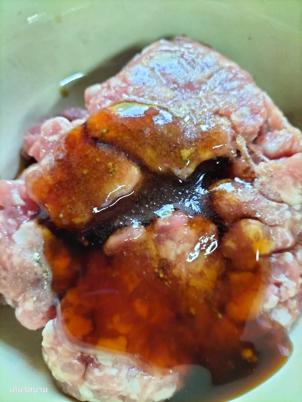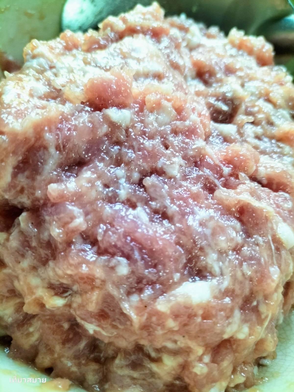 1. เนื้อหมูบดติดมันประมาณ 20-30% (ถ้าใช้เนื้อแดงล้วนจะแห้งกระด้างค่ะ)