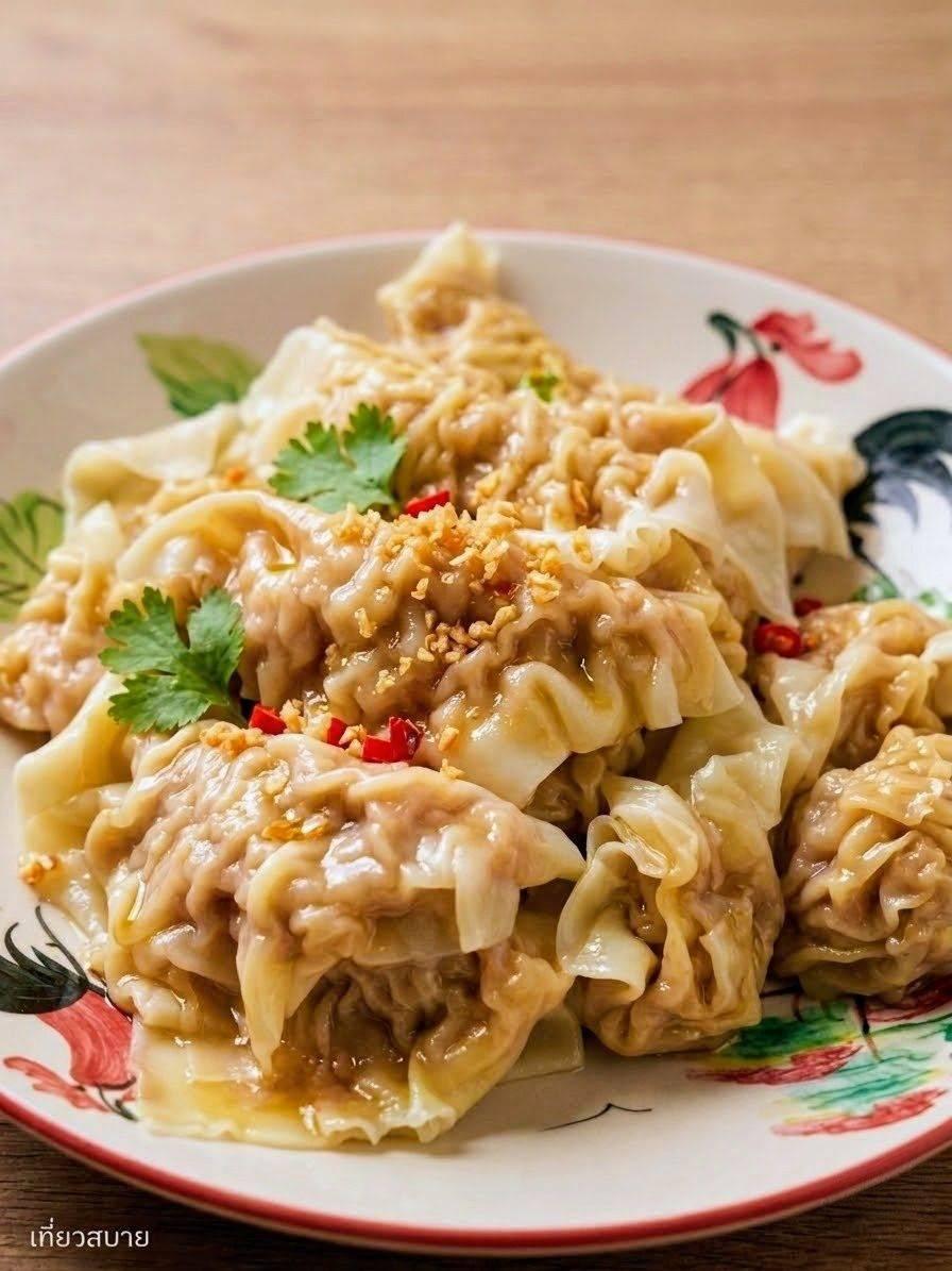 เกี๊ยวต้ม คลุกกระเทียมเจียวหอมๆ และ