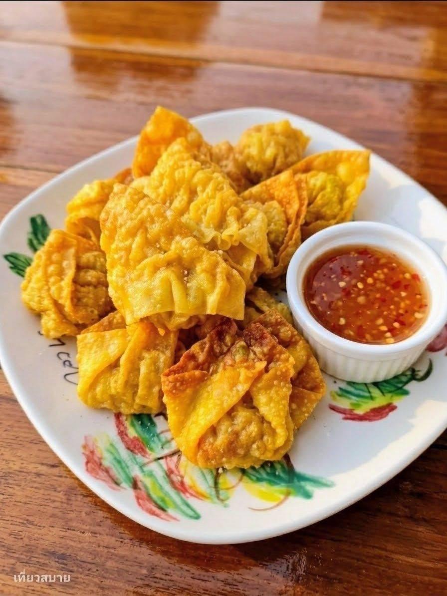 เกี๊ยวทอดกรอบ จิ้มน้ำจิ้มไก่