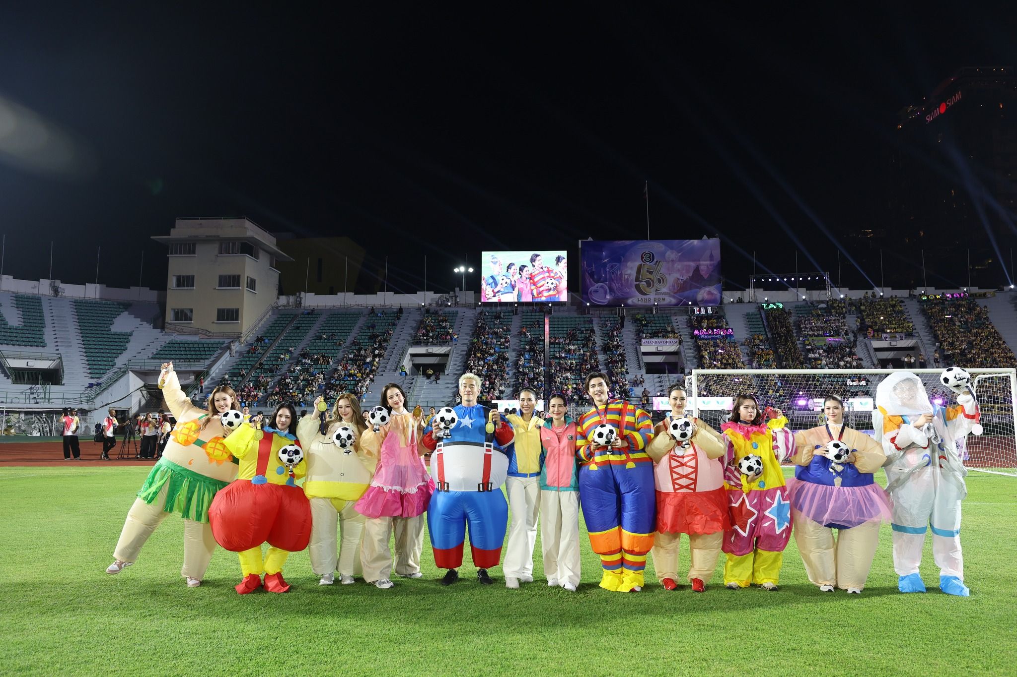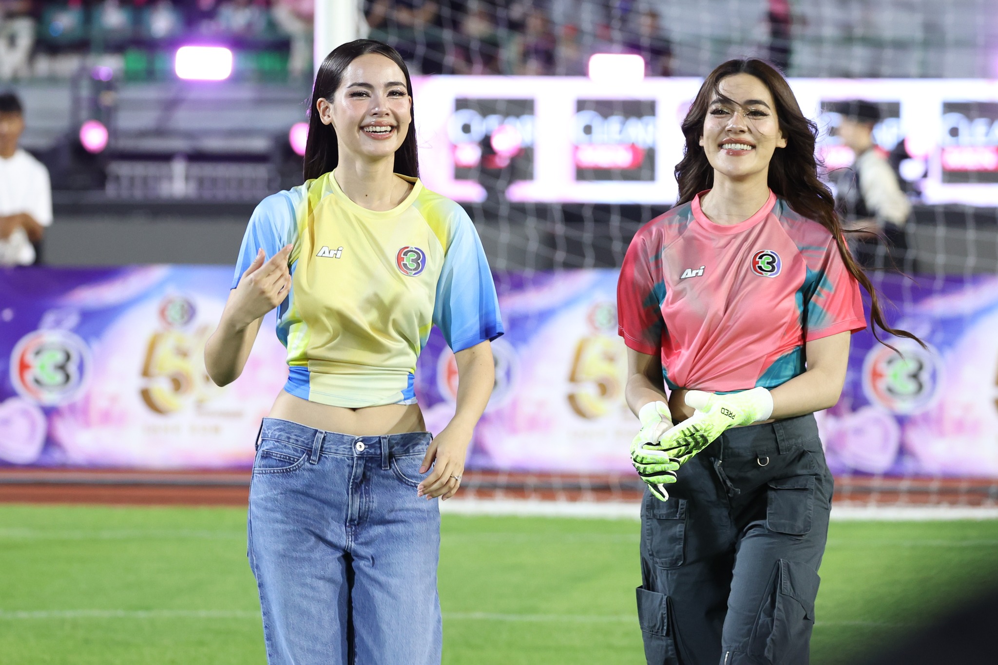 หลิง–ออม เรียกว่าขนความหวาน ความน่ารัก ความแซ่บ และความเซอร์ไพรส์มาเต็มเวที ทำเอากรี๊ดสนั่นแบบหยุดไม่อยู่จริง ๆ ก่อนกลับเข้าสู่ฟุตบอลครึ่งหลัง เกมกลับมาเดือดอีกครั้งแบบไม่มีใครผ่อน เกมเร็ว แรง ปะทะหนัก และ