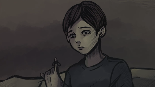 เธอตอบว่า เห็นเด็กผู้ชายคนหนึ่งนั่งกอดเข่าร้องไห้ ว่าเจ็บปวดอยู่ตลอดเวลา