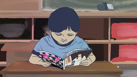 ชินจิ โนบุฮิโตะ เด็กชายกำลังเฝ้ารอดูอนิเมะเรื่อง "เรื่องเล่ามุมมืด" ที่ฉายเป็นตอนสุดท้ายในเวลาตี 3:20