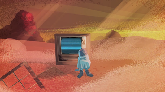 แต่เมื่อเปิดทีวีเพื่อดูอนิเมะเรื่องนั้น ปรากฎว่า บรรยากาศเปลี่ยนไปเป็นทะเลทราย