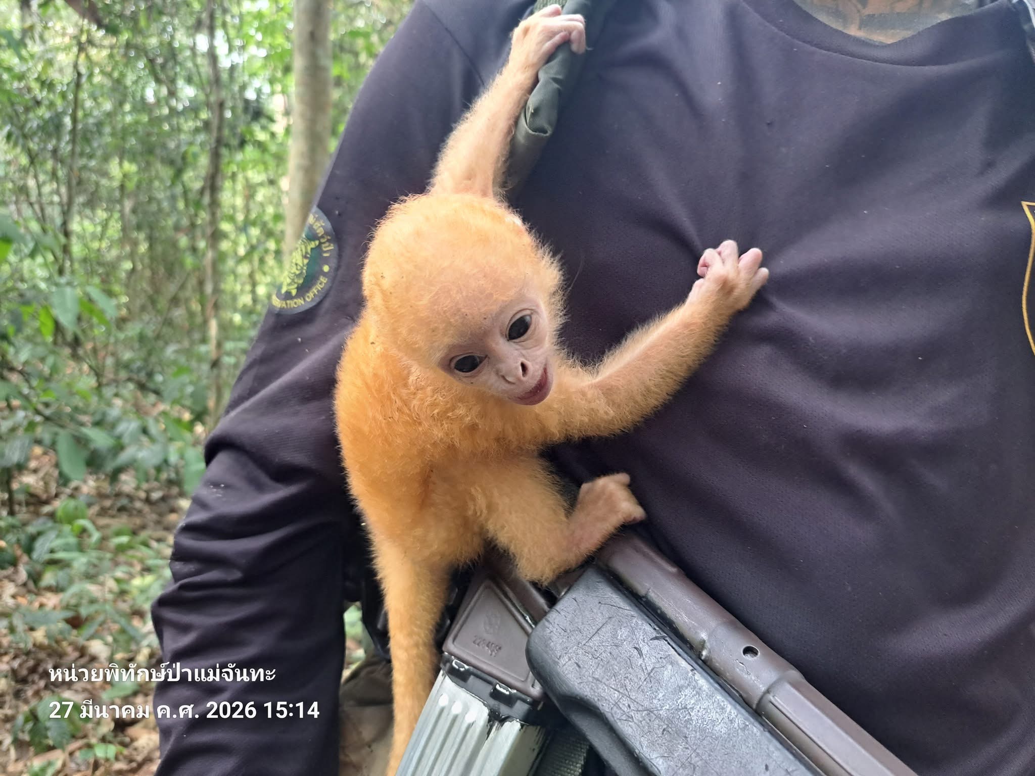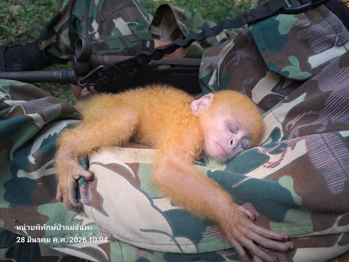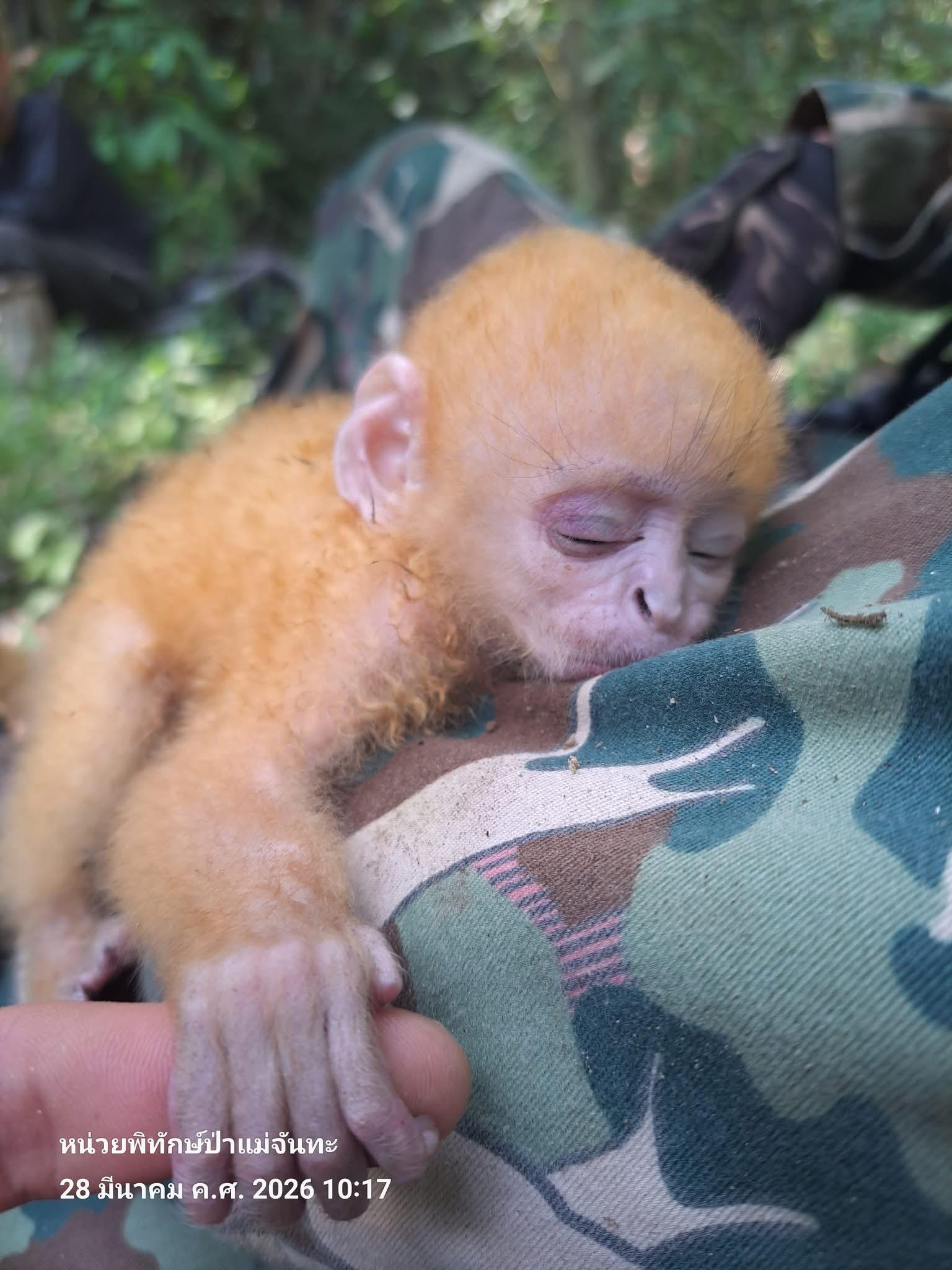 เจ้าหน้าที่ชุดลาตระเวนหน่วยพิทักษ์ป่าแม่จันทะ ได้ลาดตระเวนพบลูกค่างแรกเกิดพลัดหลง จาก แม่ค่าง