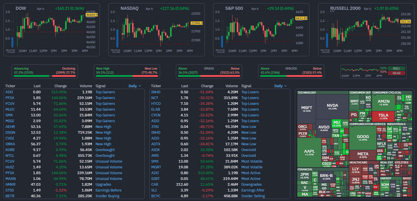 ดัชนีดาวโจนส์ปรับเพิ่มขึ้น 165.21 จุด หรือ 0.36% ปิดที่ 46,669.88 จุด ดัชนี S&P 500 เพิ่มขึ้น 29.33 จุด หรือ 0.45% ปิดที่ 6,612.02 จุด และดัชนี Nasdaq เพิ่มขึ้น 117.16 จุด หรือ 0.54% ปิดที่ 21,996.34 จุด