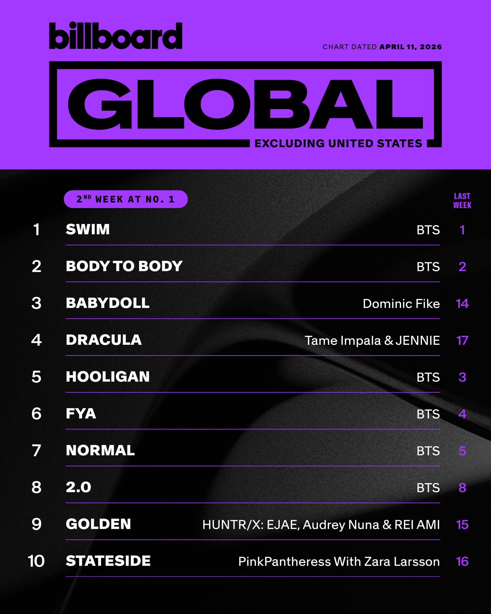 ✨ Billboard Global Excl. U.S. [สัปดาห์ที่ 2]