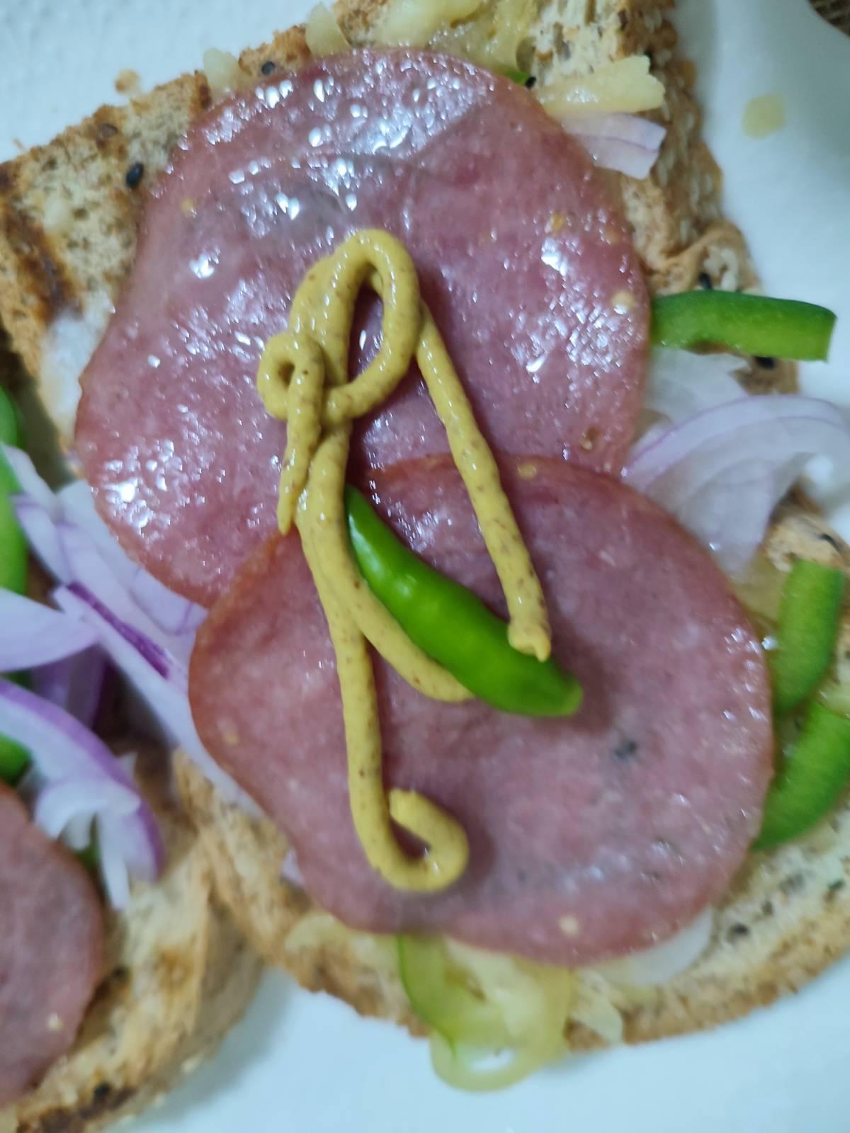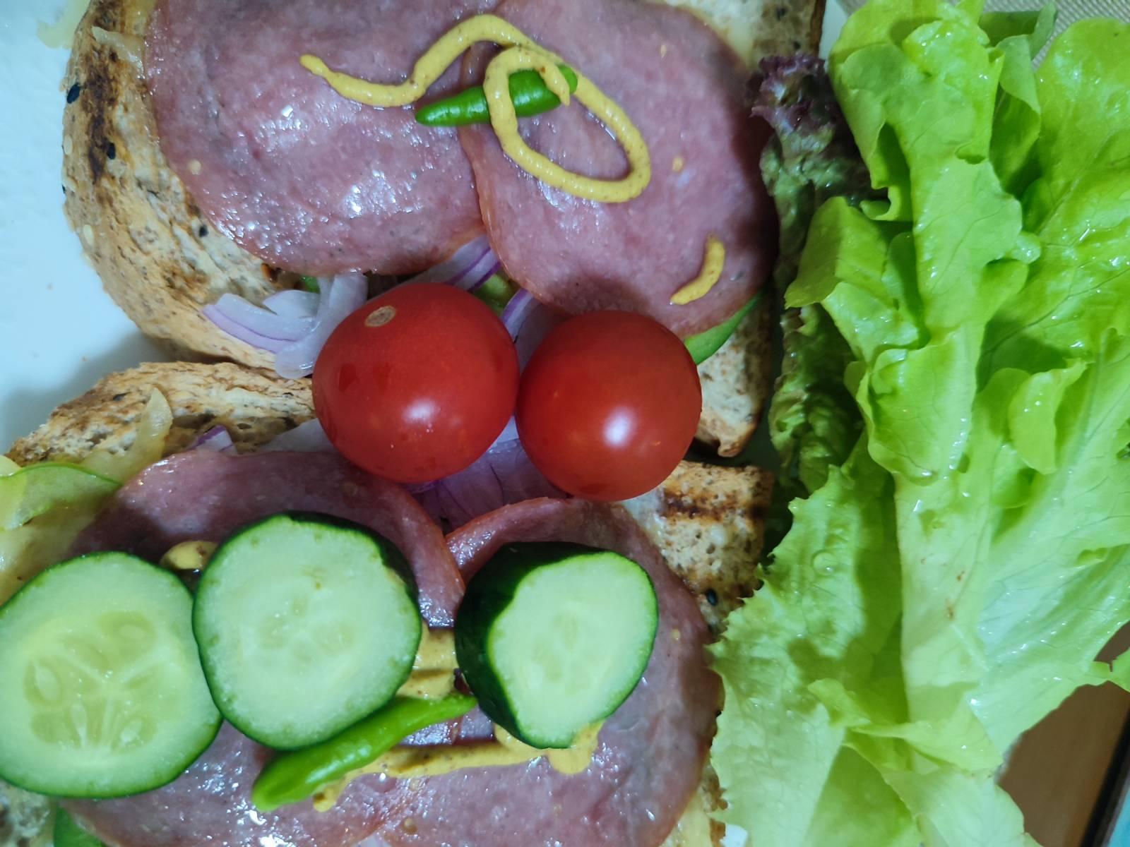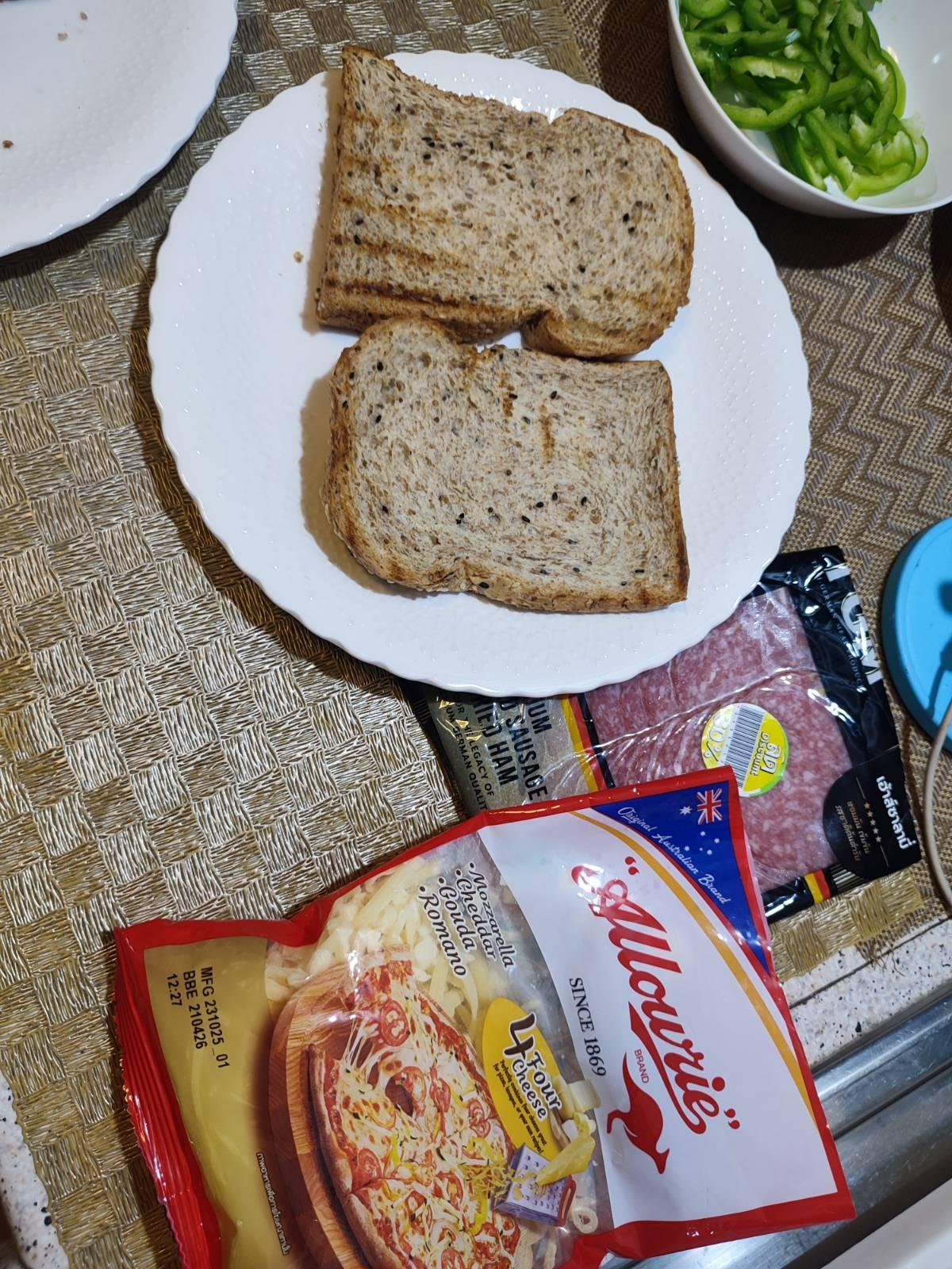 แฟนทำแซนวิชย่าง ซาลามี่ ชีส อร่อยๆให้ลองกินครับ