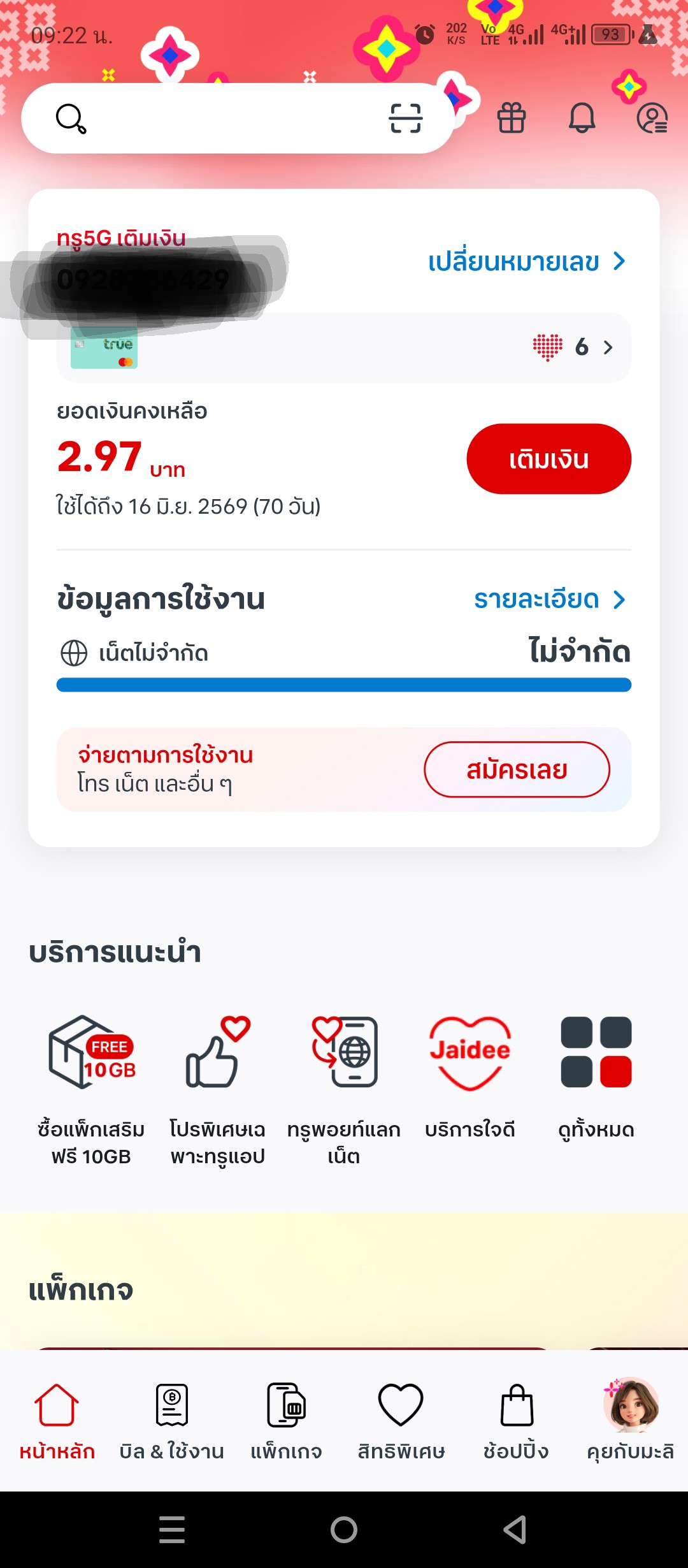 ขอวิธียกเลิกแพ็คเกจเสริมของทรูมูฟ