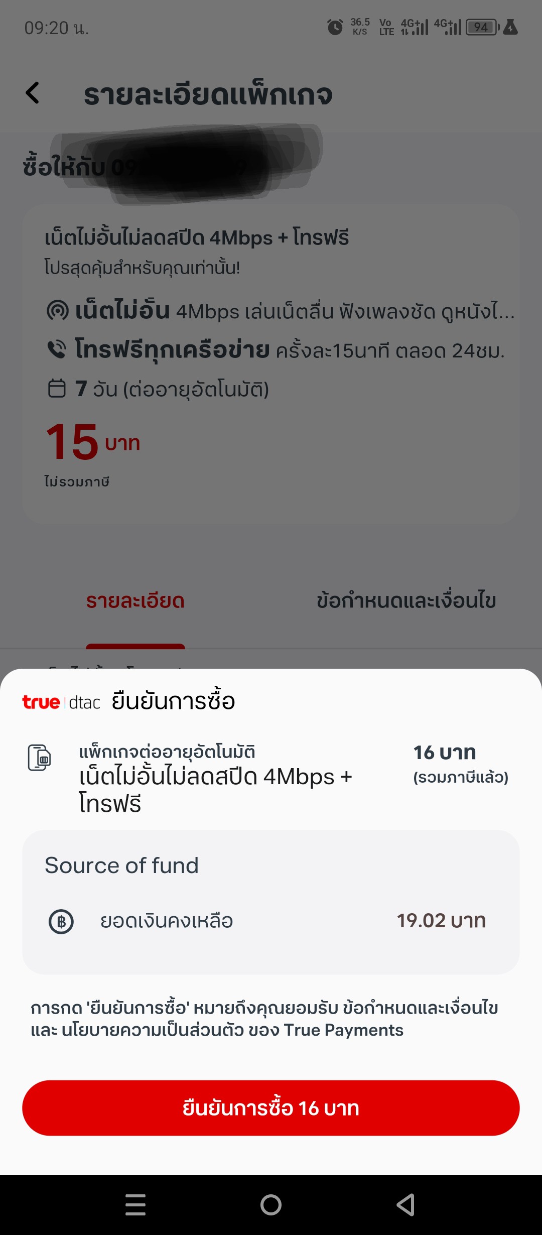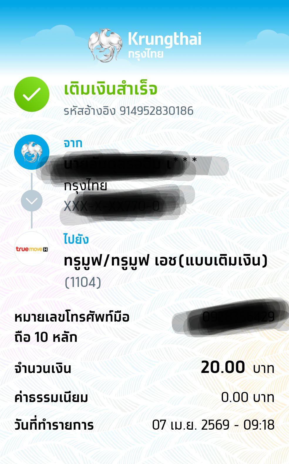 พอดีว่าสมัครเน็ตให้น้องผ่านแอพทรู พอกดซื้อระบบก็เด้งไปที่หน้าธนาคารแล้วก็โอนเงินมีสลิปปกติ แต่หลังจากนั้นสอบถามน้องน้องแจ้งว่าไม่มี SMS เข้า และได้เช็คที่แอพทรูตรงเบอร์น้องก็ไม่พบการใช้งานอินเตอร์เน็ต