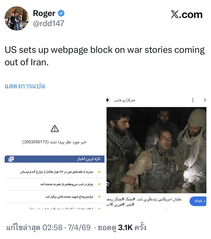 สหรัฐฯ สั่งบล็อกเว็บไซต์ที่เผยแพร่ข่าวสงครามจากอิหร่าน 😂😂😂