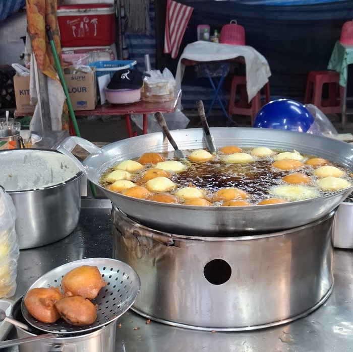 🎉จีหนุ่ย ขนมขาหมูทอด ในตำนาน70ปี‼️ ขนมขาหมู หรือขนมหวัก,ตือคาโค ขนมยอดฮิตในเทศกาลกินเจ‼️ ขนมทำมาจากเผือกนำมาคลุกเคล้ากับแป้งสูตรพิเศษของทางร้าน และนำมาทอดในกระบวย&n