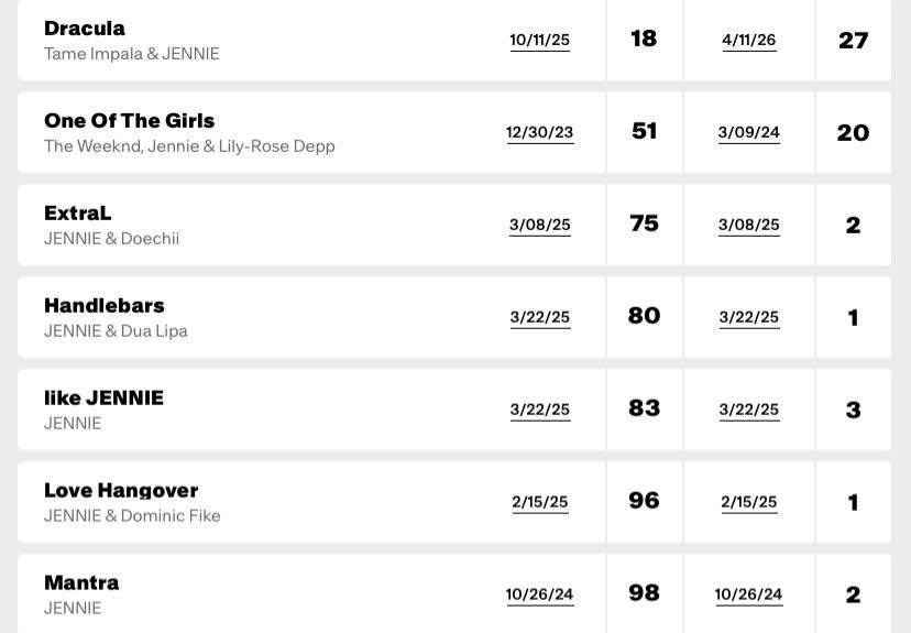ด้วยเหตุนี้ เจนนี่จึงมีเพลงติดชาร์ต 'Billboard Hot 100' รวมทั้งหมด 7 เพลง ทำลายสถิติในฐานะศิลปินหญิงเดี่ยว K-pop ที่มีเพลงติดชาร์ตนี้มากที่สุด 🎉