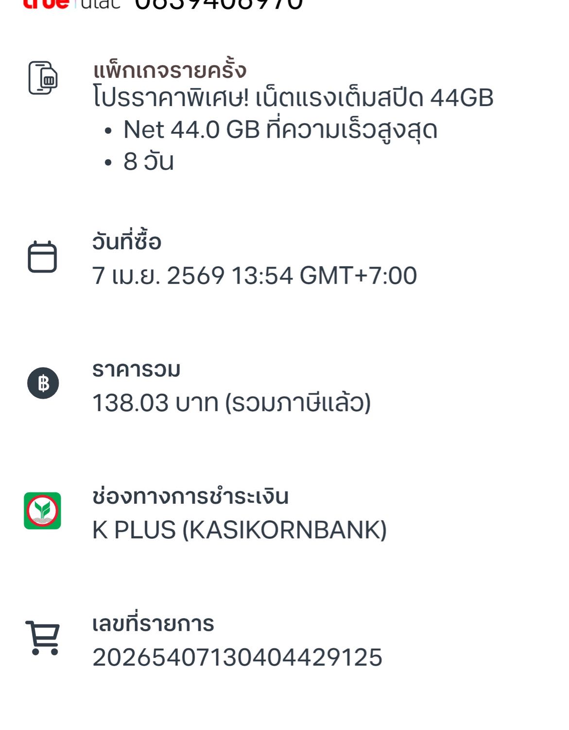 สมัครแพ็กเกจผ่านแอพTrueจ่ายเงินแล้วไม่ไดัแพ็จเกจเน็ต