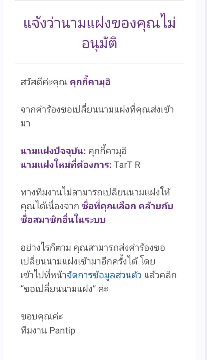 เอ๊ะ ไม่สามารถเปลี่ยนนามแฝงเป็น TarT R