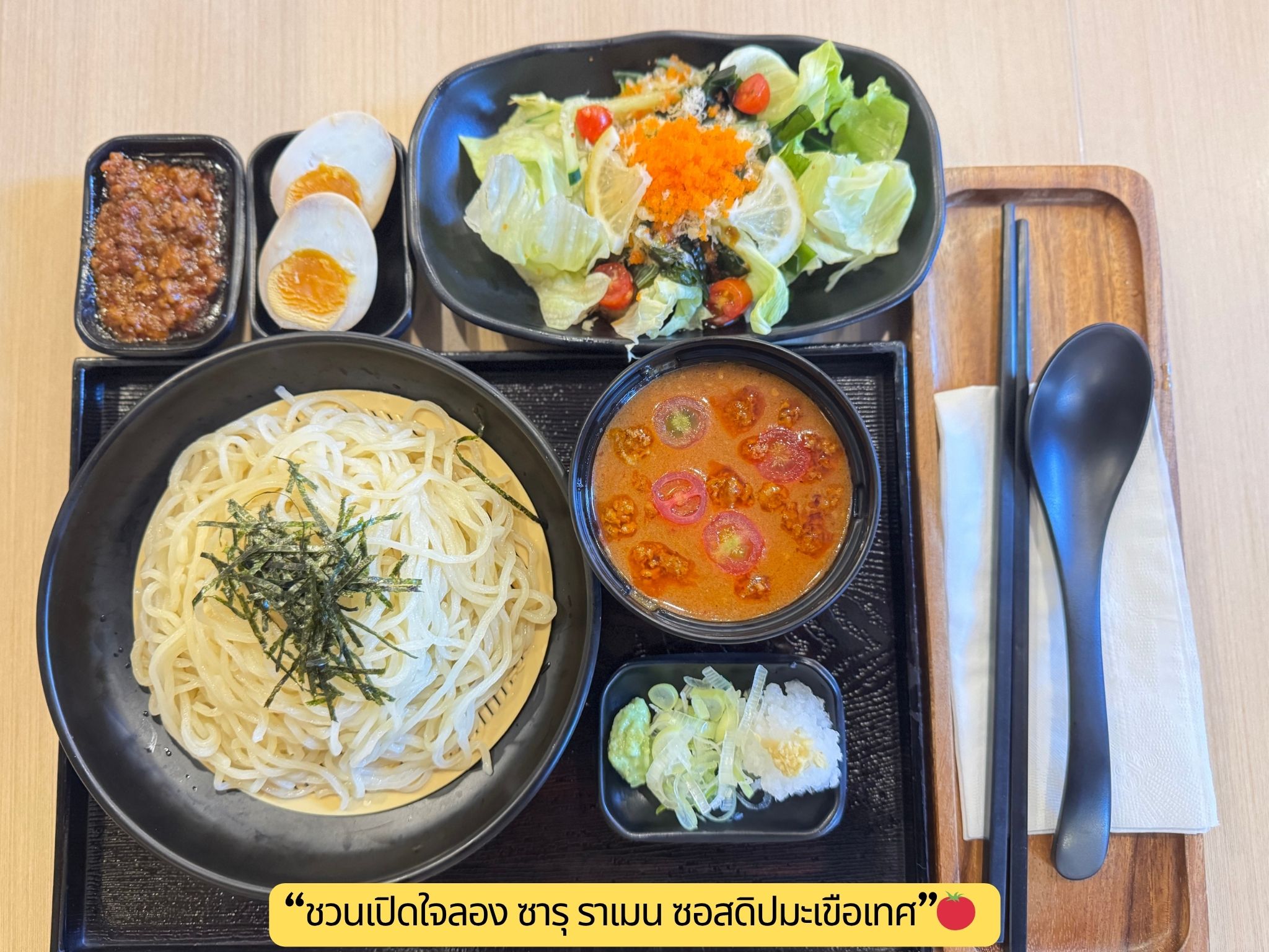 “ซารุ ราเมน…ซอสดิปมะเขือเทศ?” 🍅 แค่เห็นก็หยุดแล้ว เพราะมันดูแปลกมาก 😳ปกติเราก็เป็นคนชอบกินบะหมี่เย็นญี่ปุ่นอยู่แล้ว (สายหมี่เย็นแล้วหนึ่ง) แต่ “ซอสมะเขือเทศ” คือไม่เคยคิดว่าจะเอามาคู่กันได้เลย