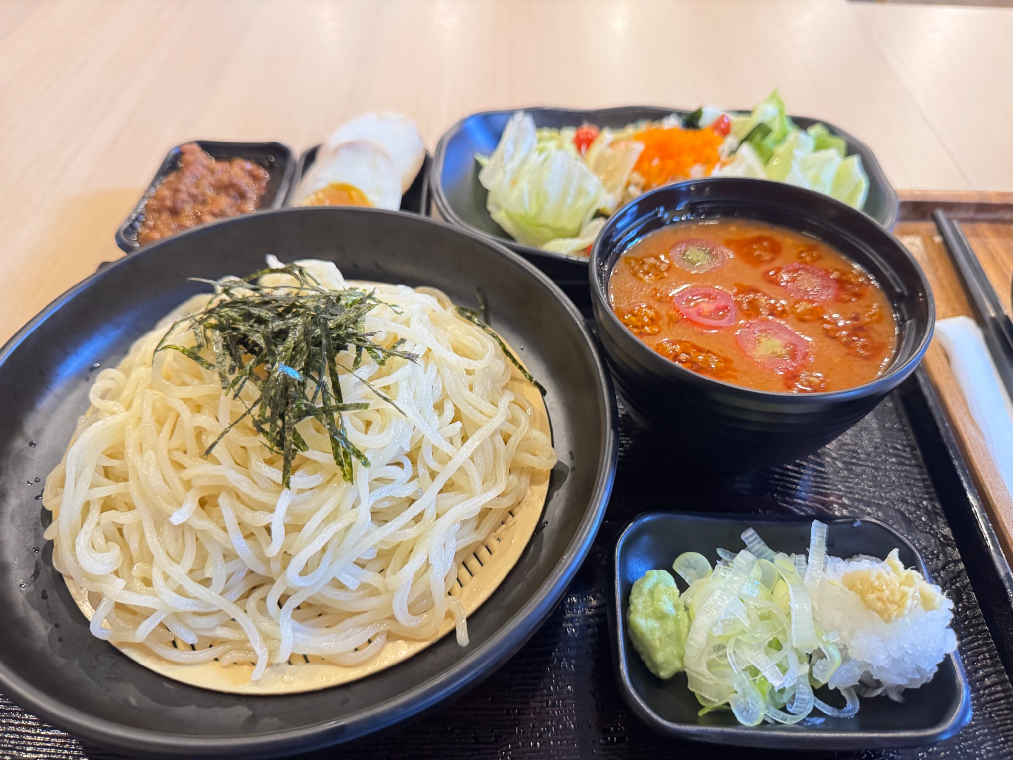 แต่ถ้าใครกลัวไม่อิ่มแบบเรา เราแอดไข่ต้มซีอิ๊ว, บูตะคาราชิ, และมินิวากาเมะ สลัดเพิ่ม อิ่มพุงกางไปเลย