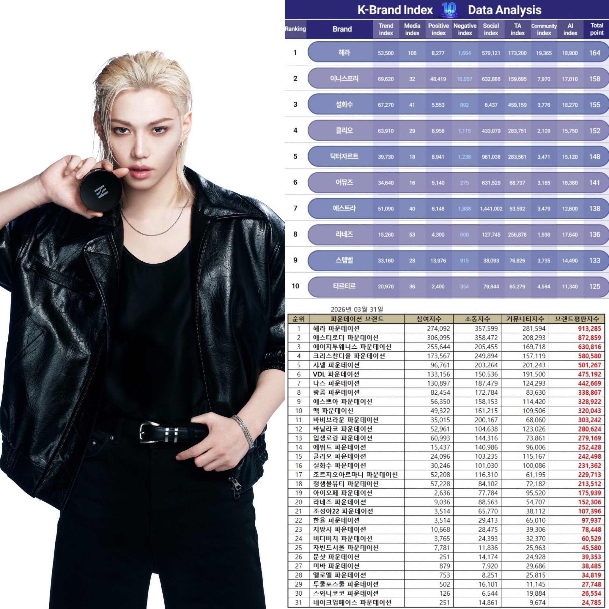 🔥 Stray Kids Felix แบรนด์แอมบาสเดอร์ระดับโลก HERA แบรนด์อันดับ 1 หมวดเครื่องสำอางของ K-Brand Index เดือนเมษายน 2026