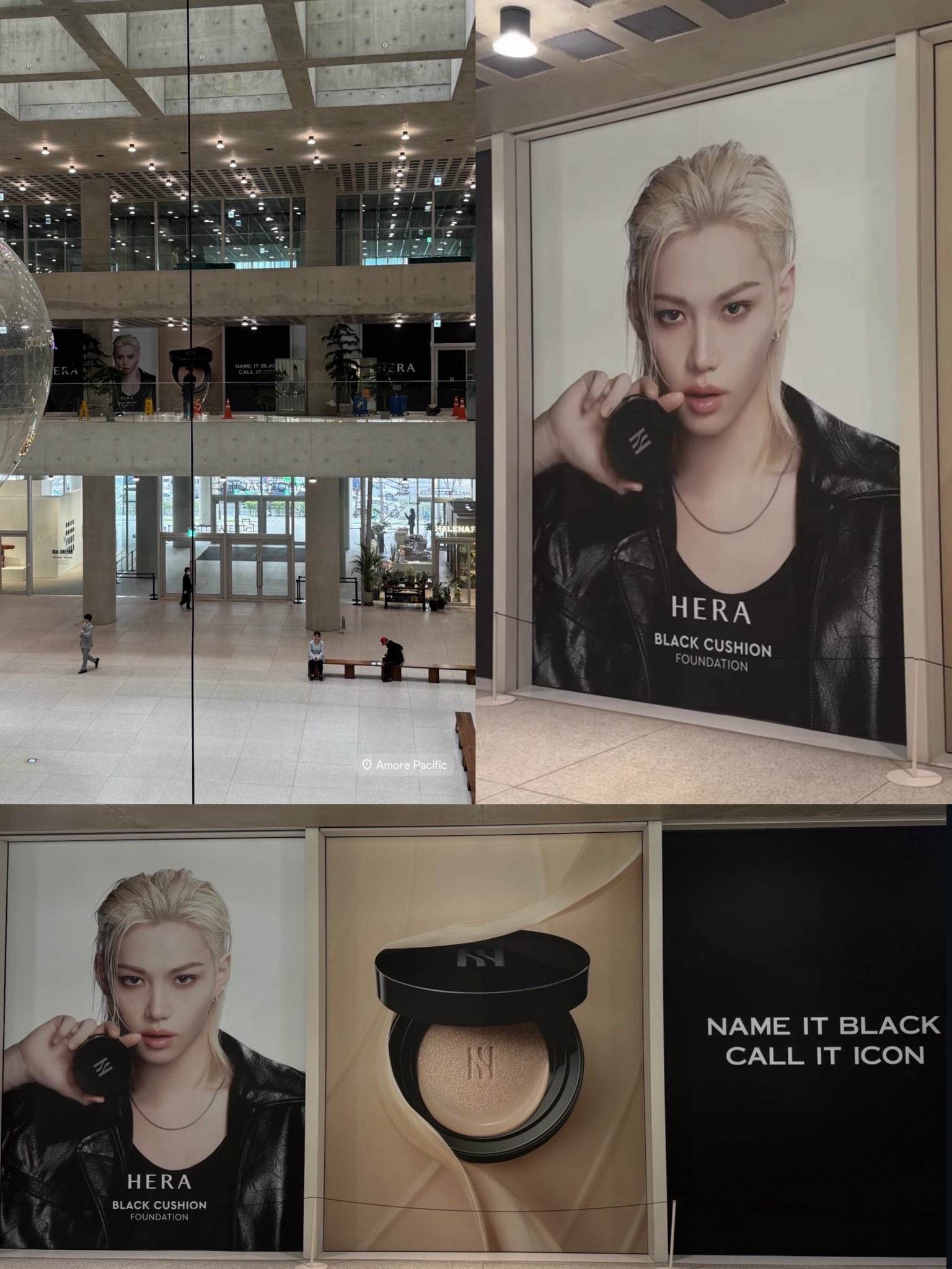 โฆษณาแคมเปญ HERA Global ใหม่ของ Felix ถูกพบเห็นบนป้ายโฆษณาที่สำนักงานใหญ่ Amorepacific ในยงซาน