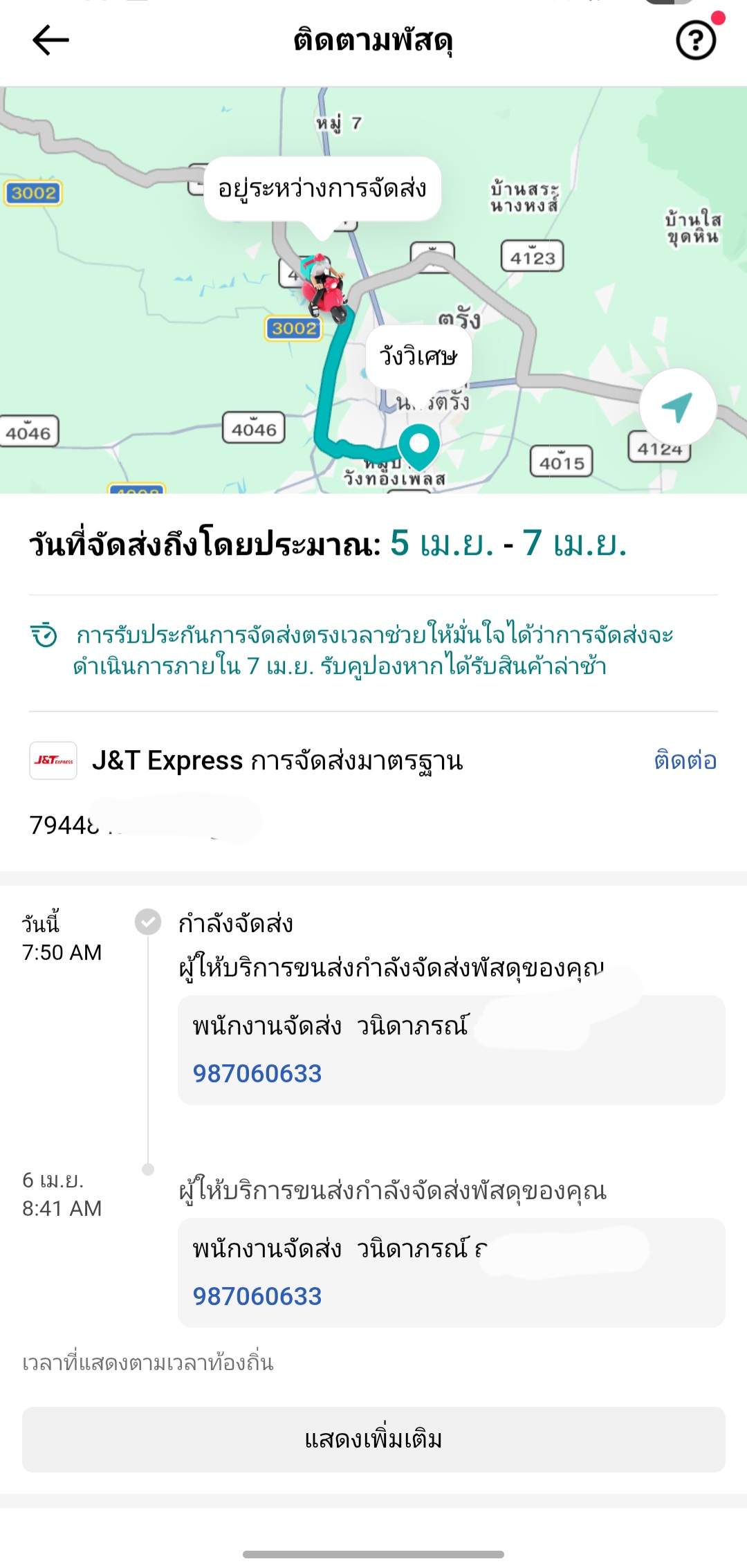 การขนส่งที่ล่าช้าของ j&t ใน อ.วังวิเศษ จ.ตรัง