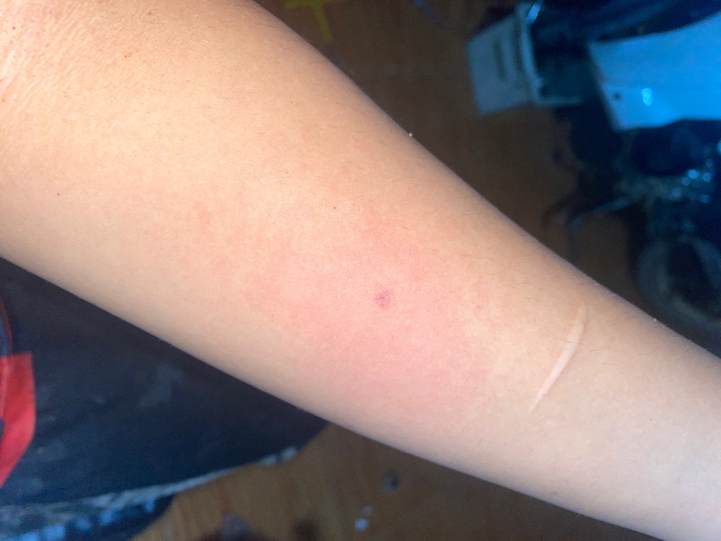 คือเราโดนอะไรไม่รู้กัดเป็นมา3-4วันแล้วค่ะซึ่งมันแดงขึ้นเรื่อยๆเลยตรงกลางมีตุ่มใสเล็กๆย้ำเล็กมากแล้วพอเราแกะมันก็มีน้ำใสๆออกมาค่ะแต่ไม่เยอะไม่มีเลือดออกคันด้วยค่