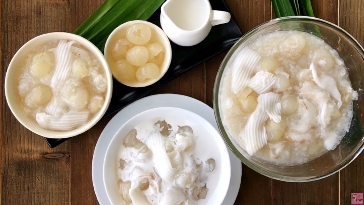 ส่วนผสมข้าวเหนียวเปียกลำไยมะพร้าวอ่อน