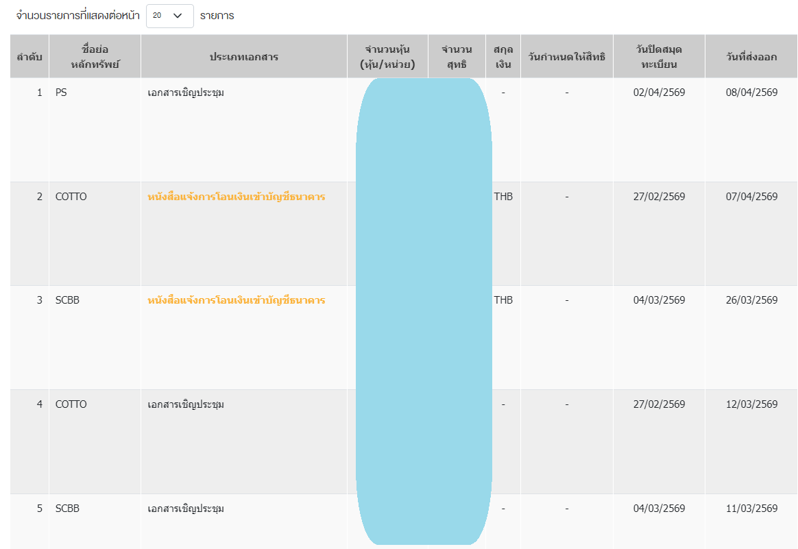 (ข่าวหุ้น COTTO) ใน TSD อัพเดทสถานะ XD แล้วค่ะ