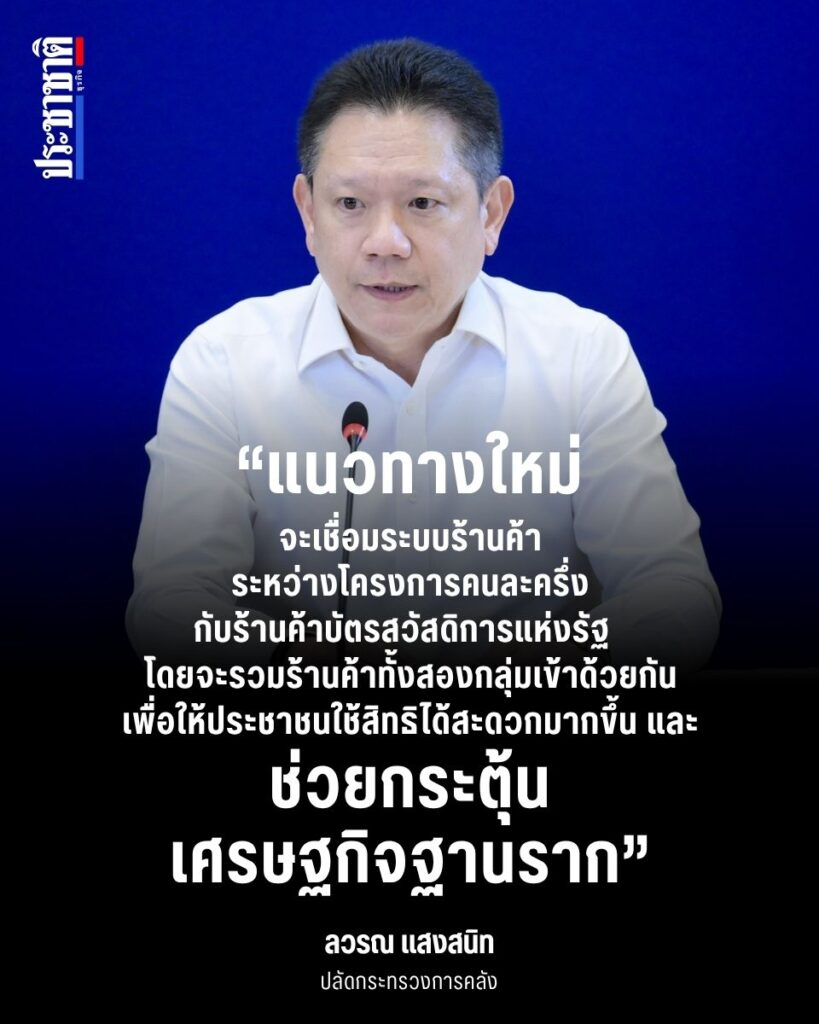 เชื่อมบัตรสวัสดิการแห่งรัฐกับคนละครึ่งเข้าด้วยกัน