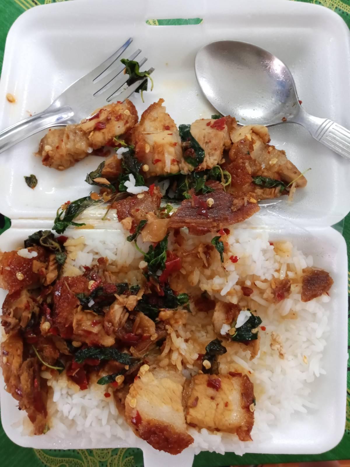 ข้าวกะเพราไก่ + แกงจืดมะระ 🍱🍗🌿