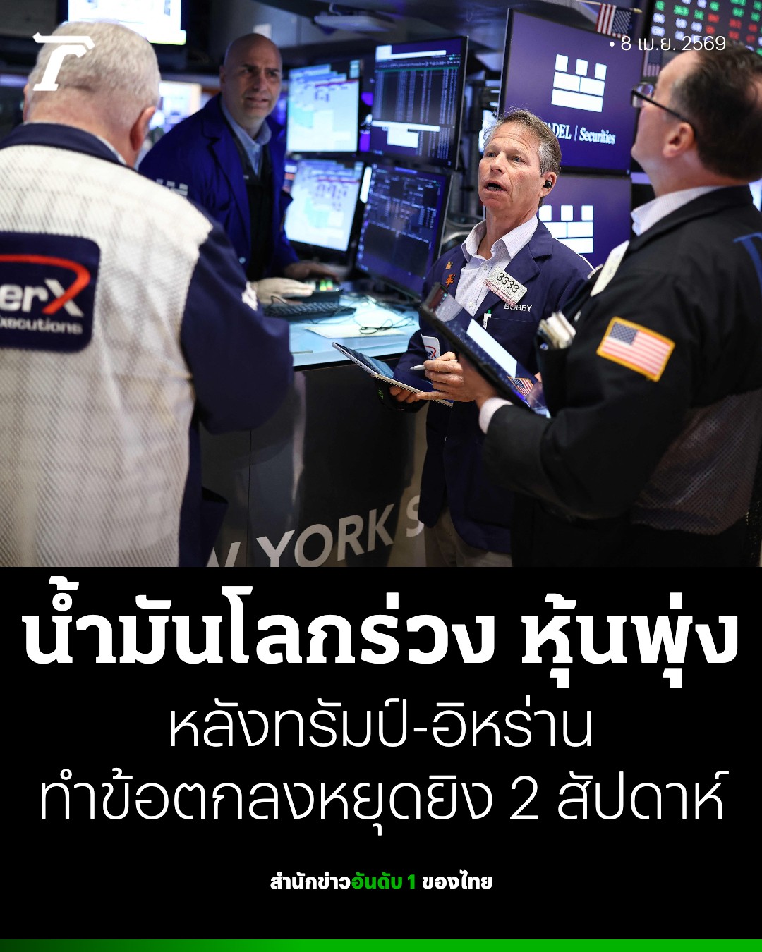 น้ำมันโลกปรับตัวลดลง-ตลาดหุ้นสหรัฐฯ พุ่ง หลัง ทรัมป์ หยุดยิงกับ อิหร่าน เป็นเวลา 2 สัปดาห์