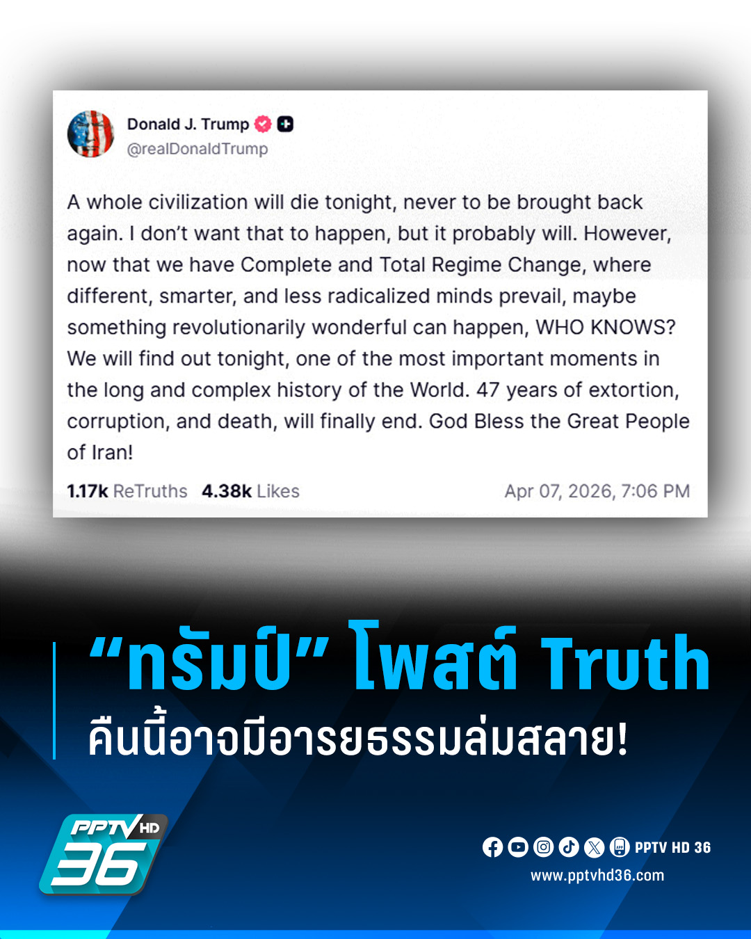 ด่วน ..! อิหร่านขึ้หดตดหาย ยอมแพ้แบบมีเชิง กลัวอารยธรรมเลวๆ IRGC ล่มสลาย, ยอมพี่ทรัมป์ทุกกรณี