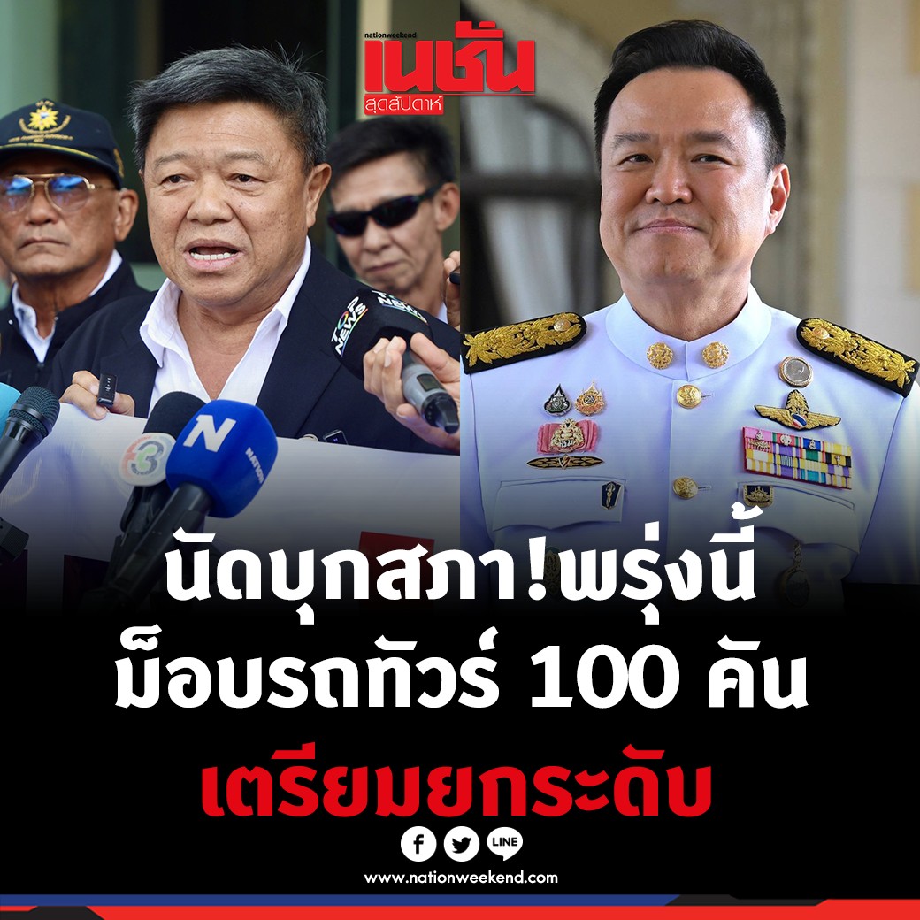 ม็อบรถทัวร์ 100 คัน บุกสภาวันแถลงนโยบาย