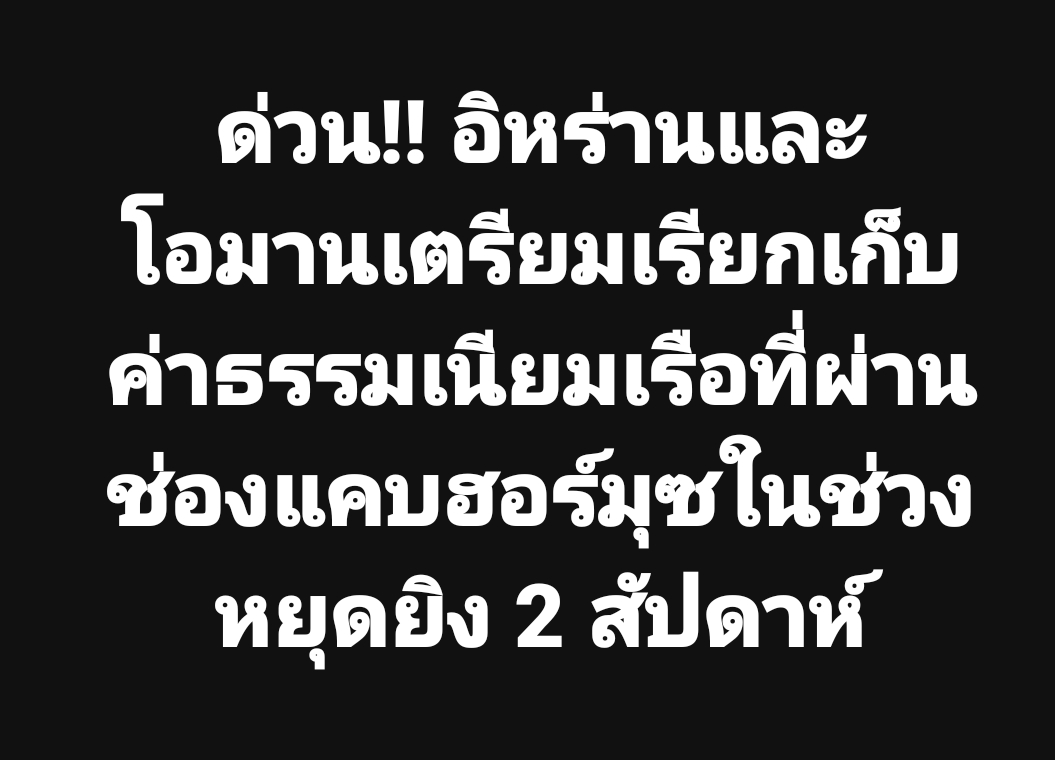 ด่วน!! อิหร่านและโอมานเตรียมเรียกเก็บค่าธรรมเนียมเรือที่ผ่านช่องแคบฮอร์มุซในช่วงหยุดยิง 2 สัปดาห์ หยุดยิง?