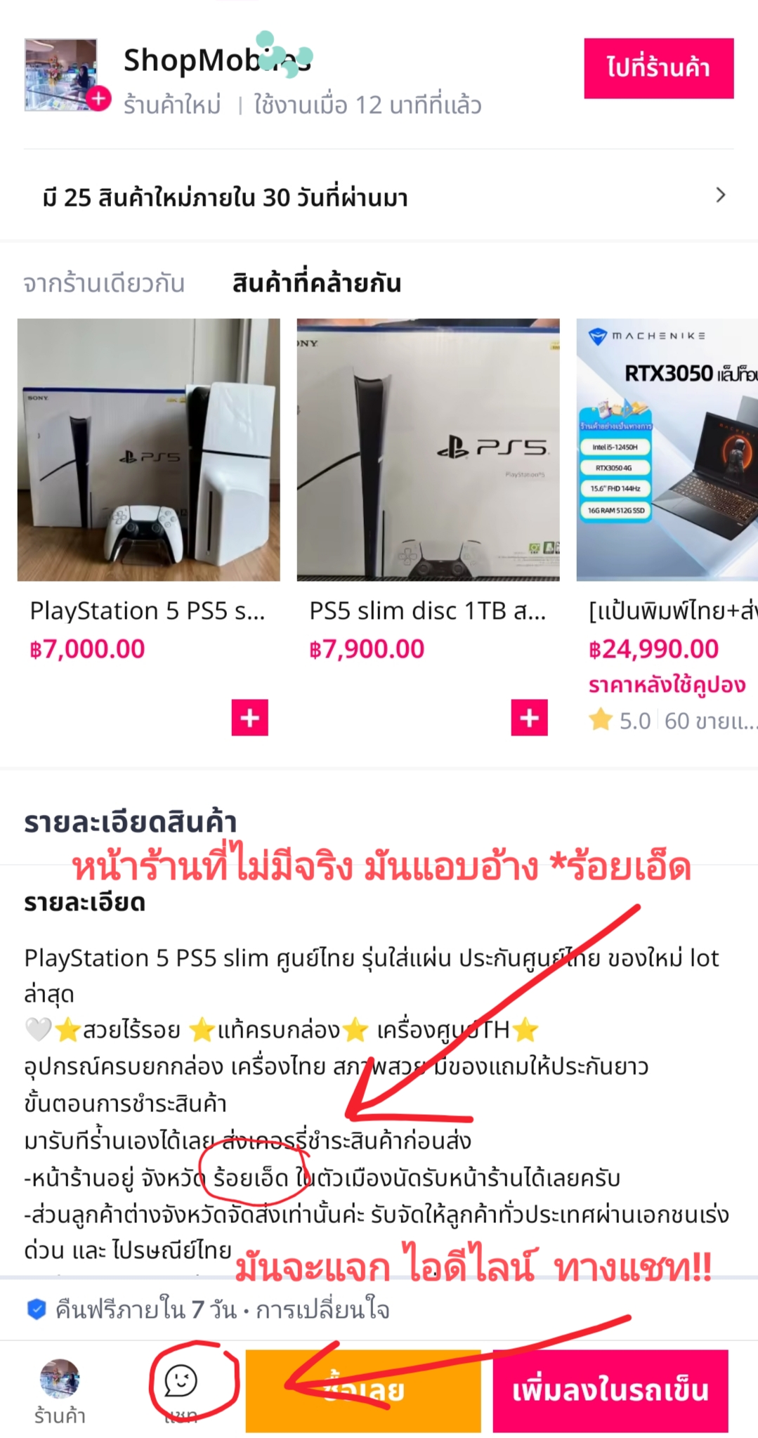 แถม ท้า!!!! ให้มารับที่หน้าร้าน เป็นการ สร้างความเชื่อ แบบ กาวๆ ว่า กูมีหน้าร้านจริง!