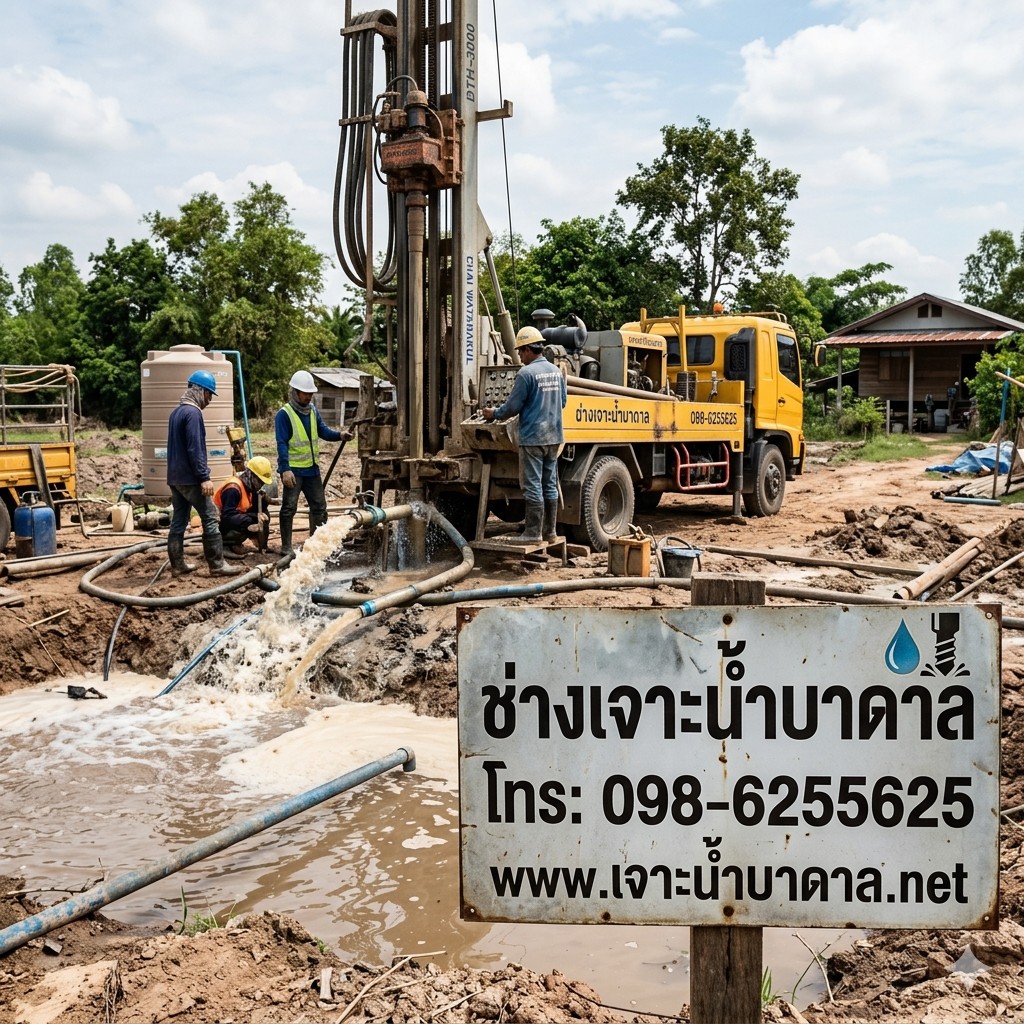 -บริการครบวงจร: ไม่ใช่แค่เจาะ แต่เรายังดูแลไปถึงการเป่าล้างบ่อบาดาล (Cleaning), ติดตั้งปั๊มน้ำบาดาล (Submersible Pump) และระบบกรองน้ำบาดาลให้สะอาดพร้อมใช้