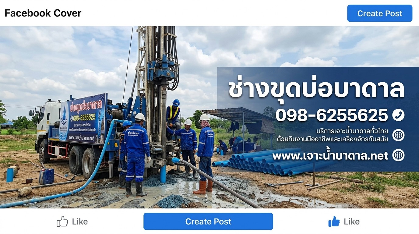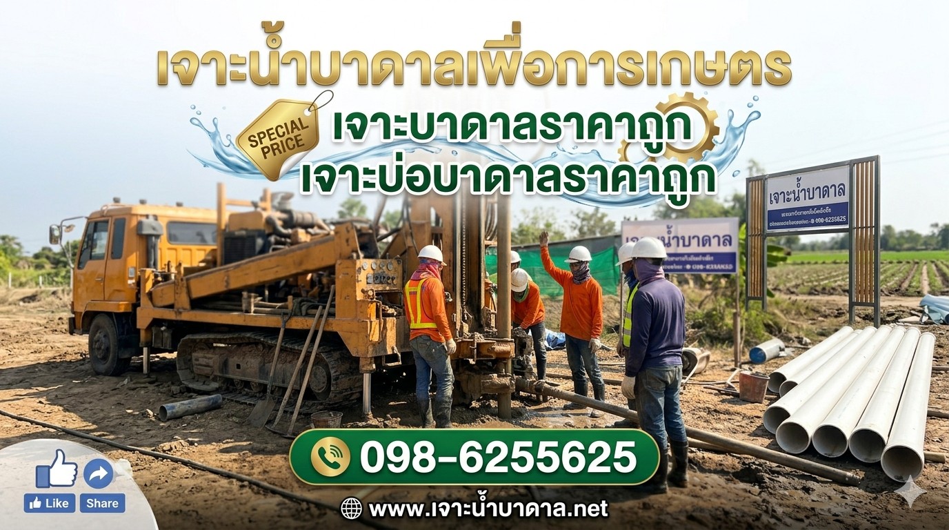 อย่าปล่อยให้ความแห้งแล้งมาทำลายผลผลิตหรือความสุขในบ้าน ปรึกษาช่างเจาะน้ำบาดาลมืออาชีพ เพื่อประเมินค่าใช้จ่ายเบื้องต้นฟรี! งานไว มั่นใจในคุณภาพน้ำ