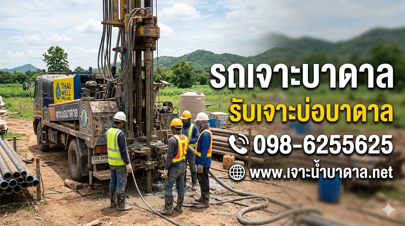 "นึกถึงน้ำบาดาล นึกถึงทีมงานมืออาชีพ น้ำแรง น้ำใส ใส่ใจทุกขั้นตอน"