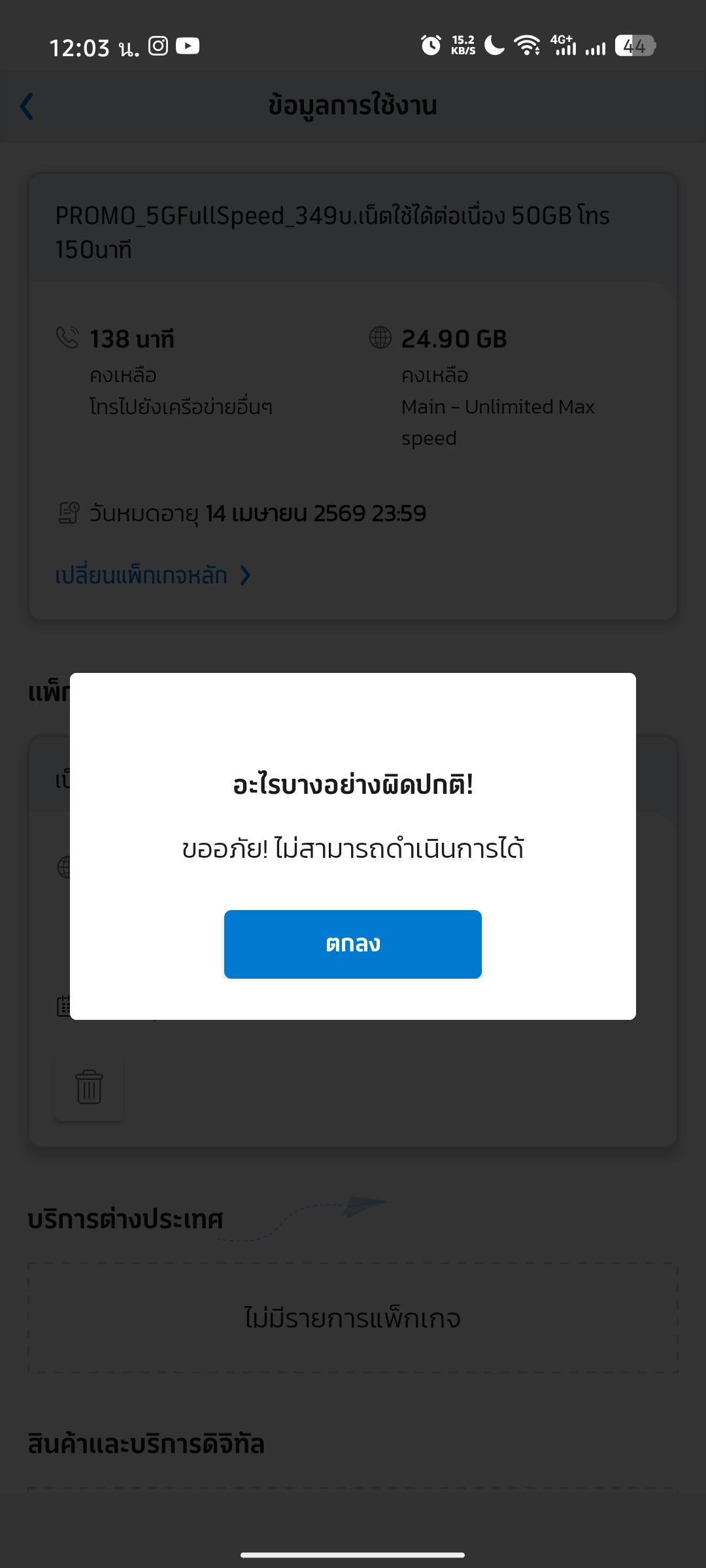 ตามที่แจ้งหัวกระทู้ไปเลยครับ ยกเลิกแพ็คเกจเสริมเน็ตดีแทคไม่ได้ติดต่อก็ไม่ได้ยกเลิกในแอปก็ขึ้นว่า ไม่สามารถทำรายการได้ ต้องการความช่วยเหลือครับ ทำยังไงดี