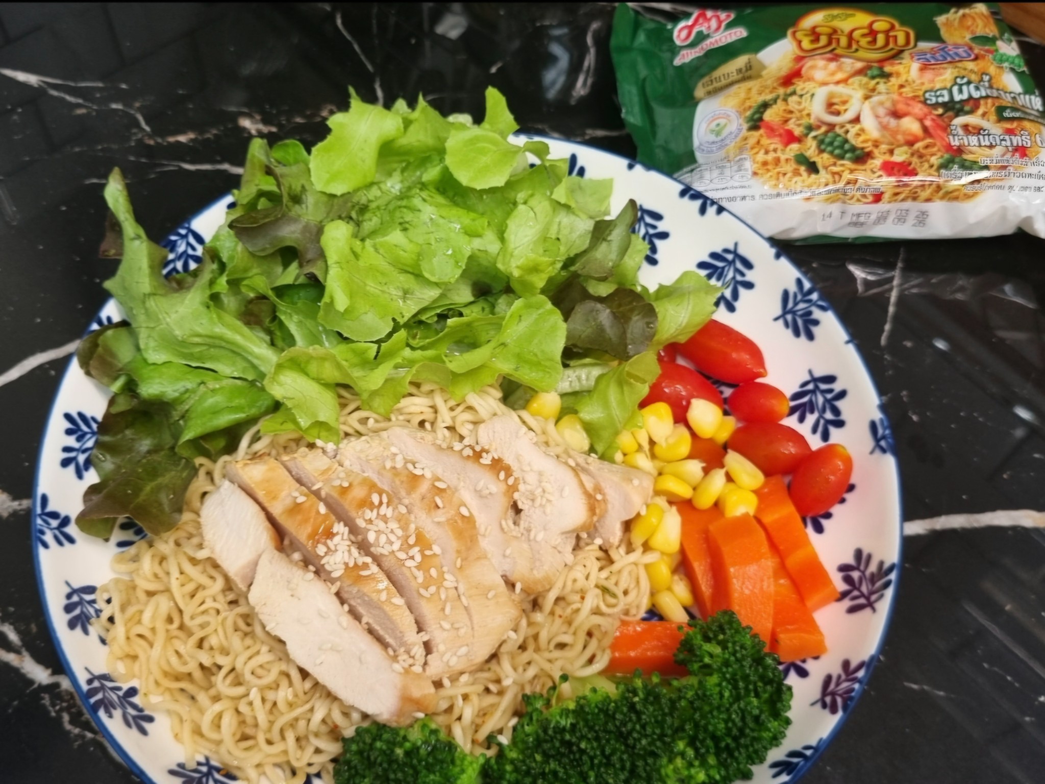 ก็จัด ยำยำผัดขี้เมากับผักสลัดและอกไก่คลีนๆไร้น้ำมัน