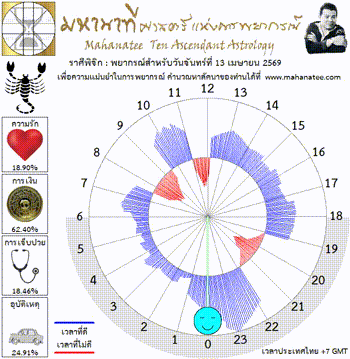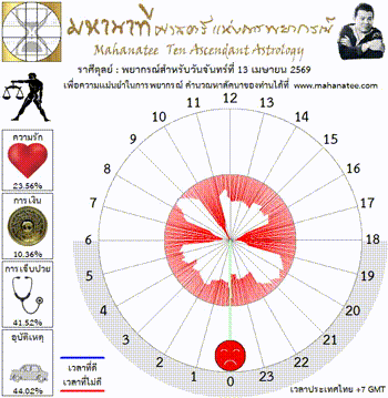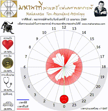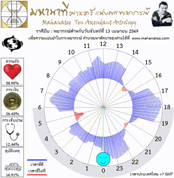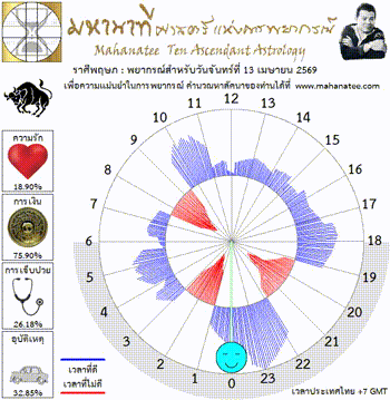 แผนภูมิและพยากรณ์ 12 ราศี สำหรับ วันจันทร์ที่ 13 เมษายน 2569