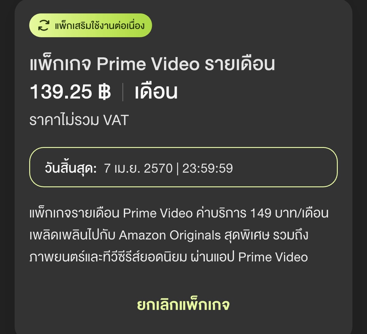 สมัคร แพ็กเกจของ ais แต่ยังดู prime Video ไม่ได้