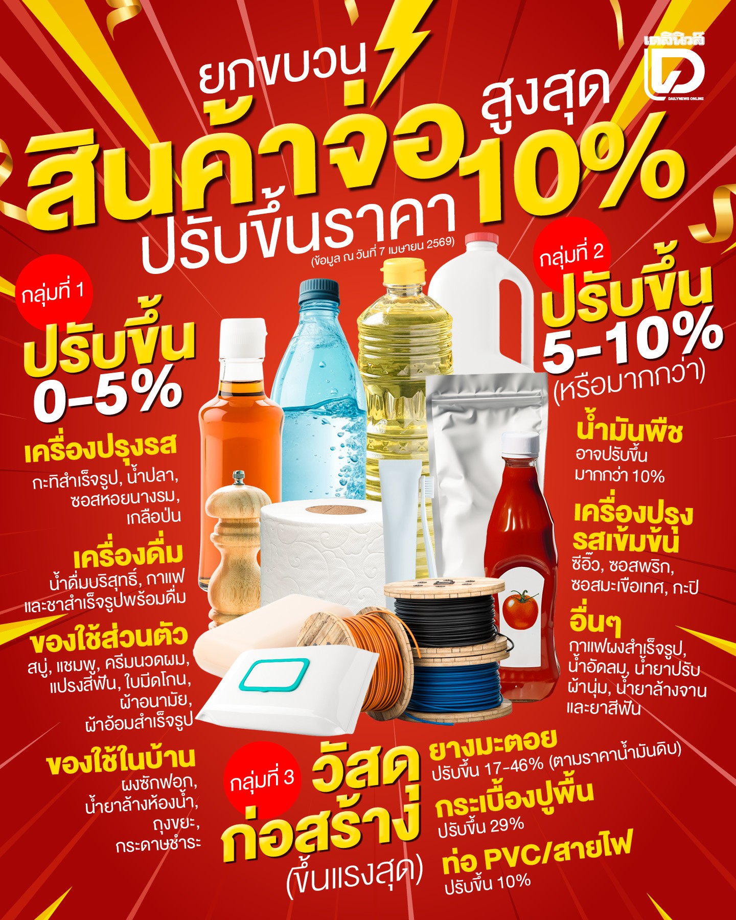 เปิดลิสต์สินค้าจ่อขึ้นราคาสูงสุด 10% จากผลกระทบน้ำมัน